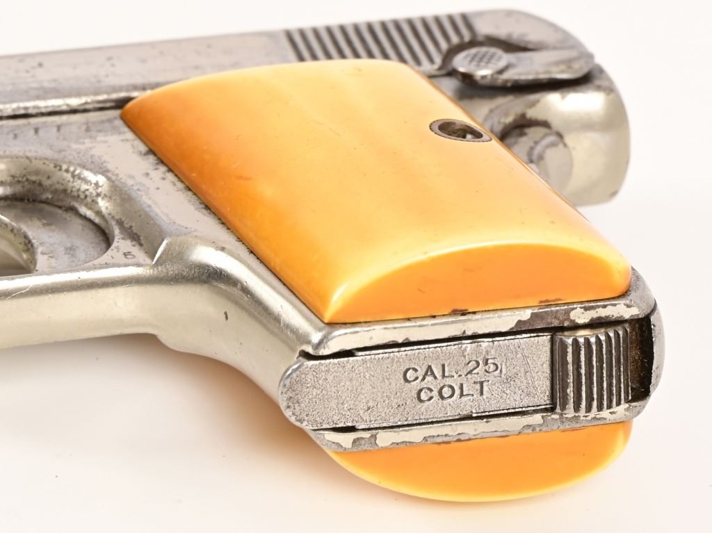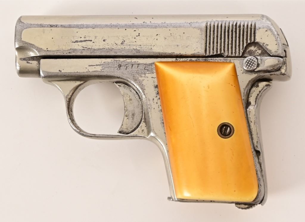 SN 87119. Has been re-nickeled, 2" barrel, dark bore. Action works. Grips appear to be bone. Modern. .