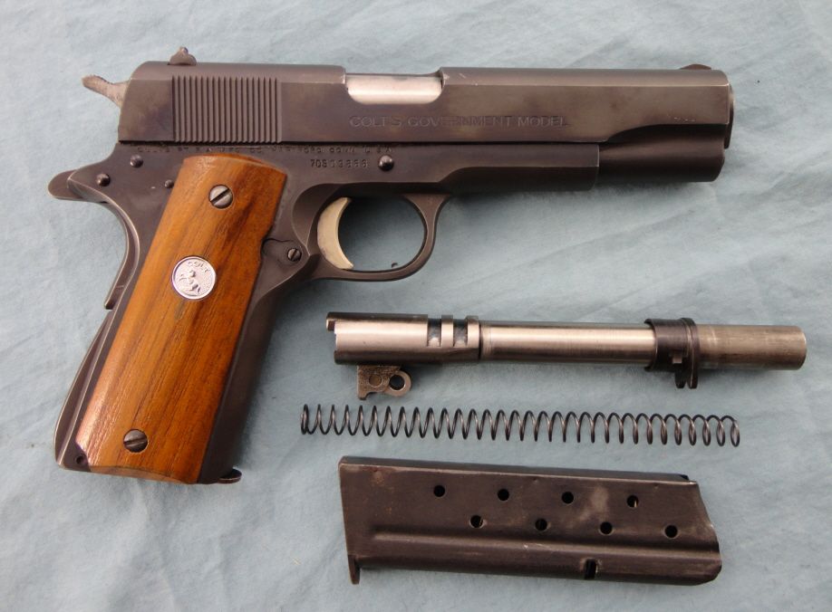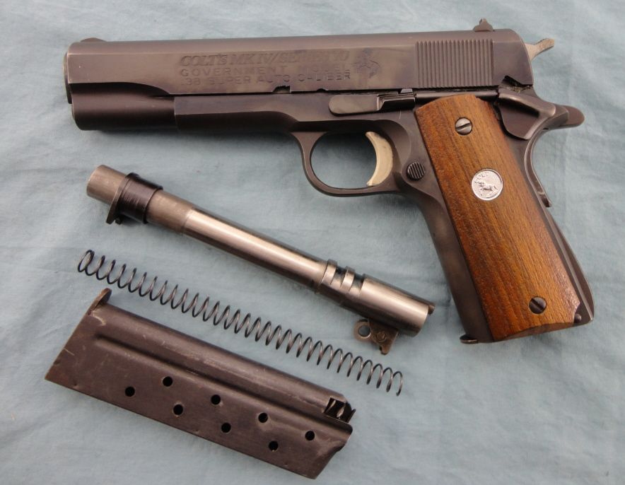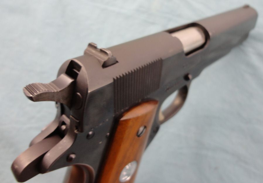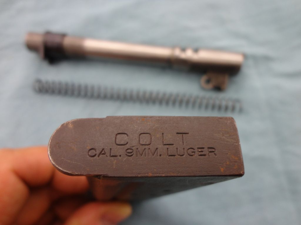 #70S09866; 38 Super; Std. config. Blued finish. Good condition w/some marks from use. Complete w/9mm conversion bbl., spring & magazine.
