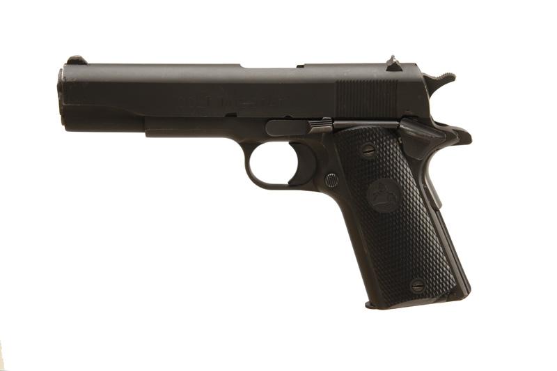 Condition: Very good showing some wear at the muzzle and depressions at thColt Series 80 remake of the 1911, with Parkerized finish. Standard configuration with 5" barrel, fixed sights and black checkered grips. Condition: Very good showing some wear at the muzzle and depressions at the butt of both stocks. Hard to find model. Includes 1 magazine.