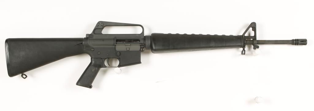 Semi auto pre-ban rifle with 20" barrel. Black finish, black plastic stock and forend, A2 front sight, aperture rear sight in carry handle, bayonet lug and flash hider. Very good bore and action. No magazine. Condition: Good to very good showing light scuffing and light use. *Modern Firearm*