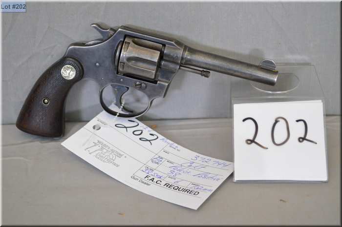 Colt Mod Police Positive 38 .38 S & W cal 6 shot Revolver w/ 102 mm bbl [ faded blue finish, fixed sights, well worn checkered Colt grips, Note : proof marks on bottom of grip straps ] Ser # 372744 * 12-6 Prohib Cert # 16157577