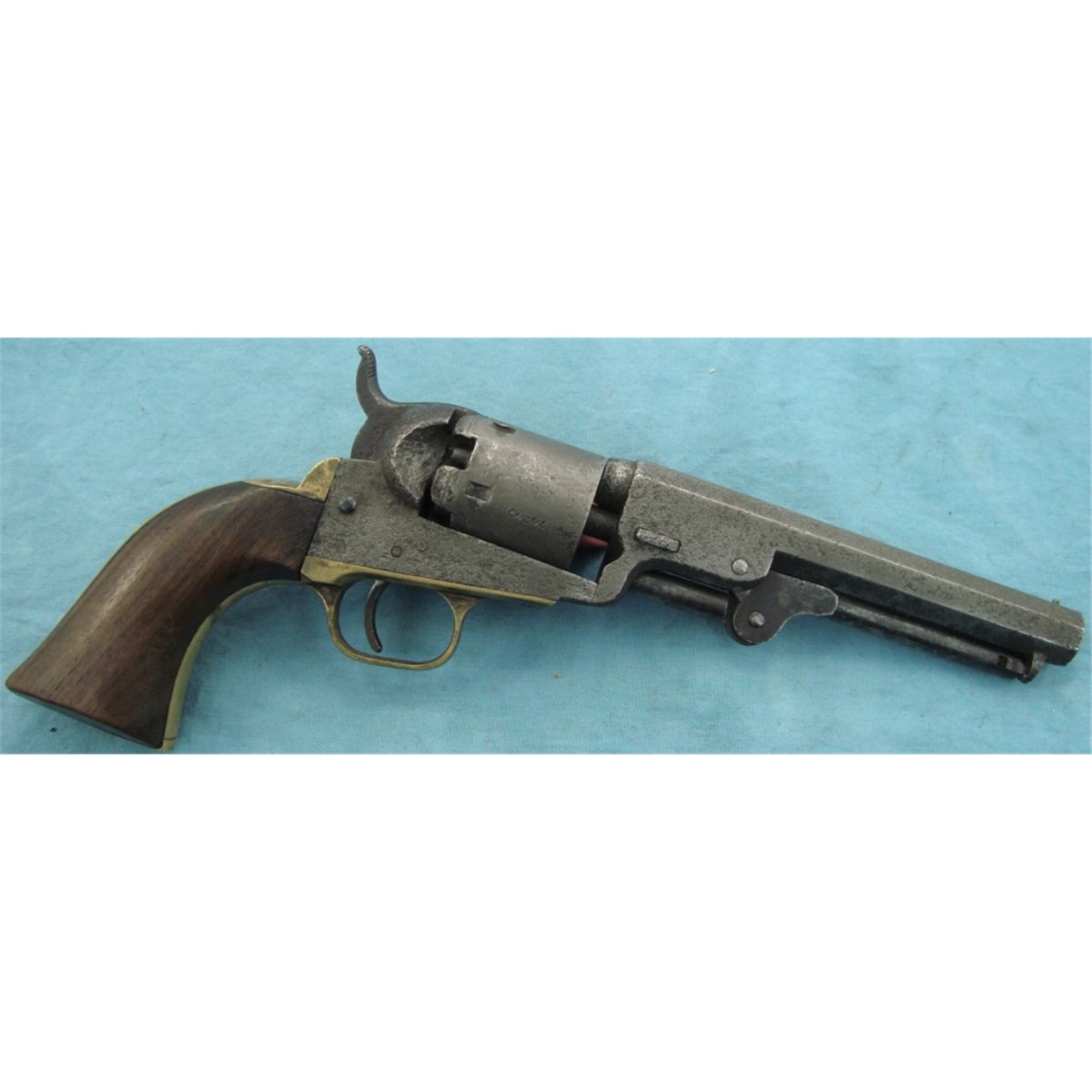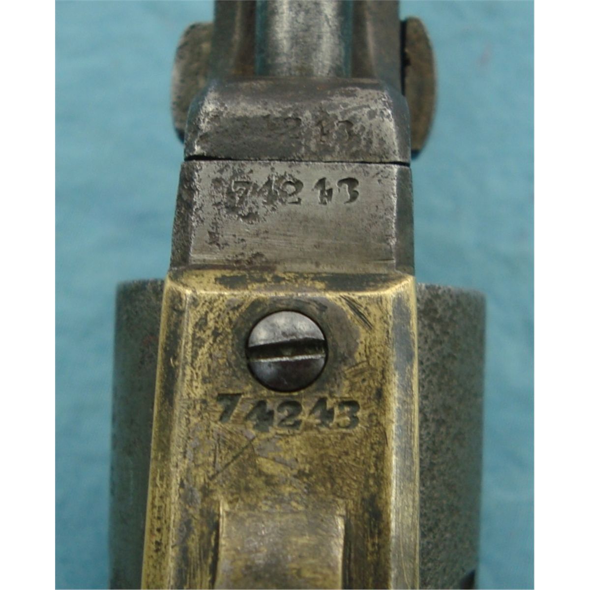 #74243; Antique. 31 cal. Parts of bbl. cylinder & frame are heavily pitted. Mechanically gun functions & grips are in good condition.
