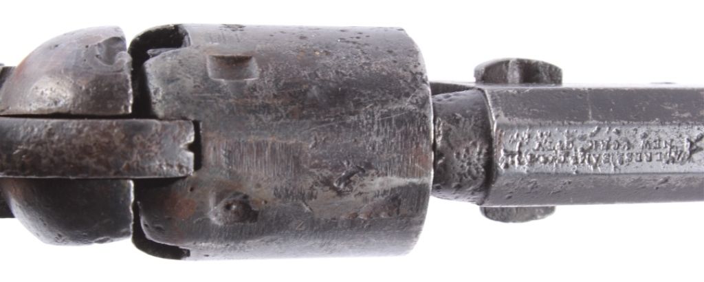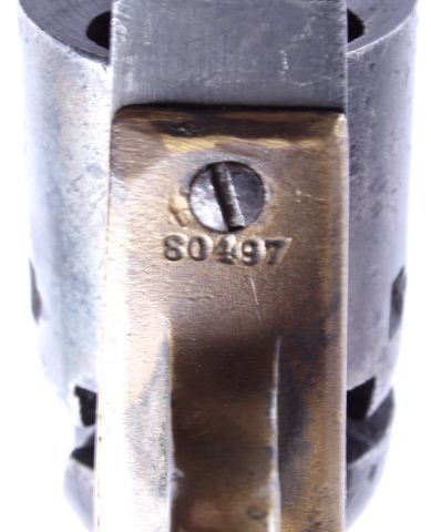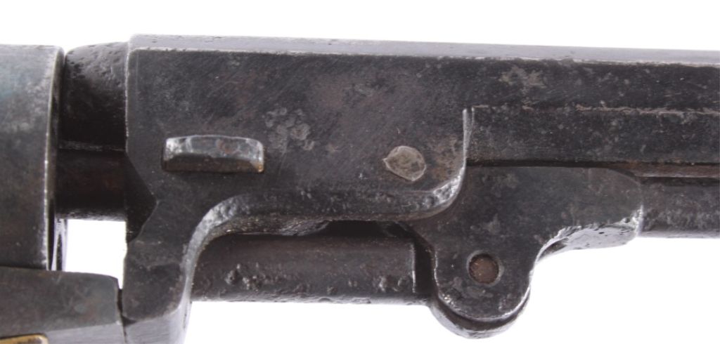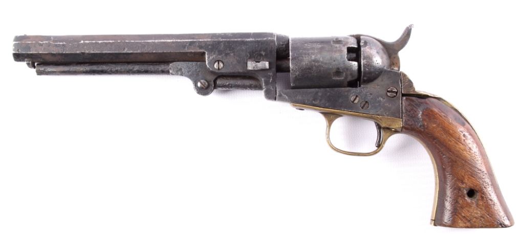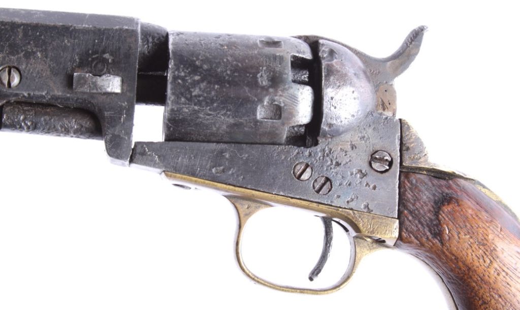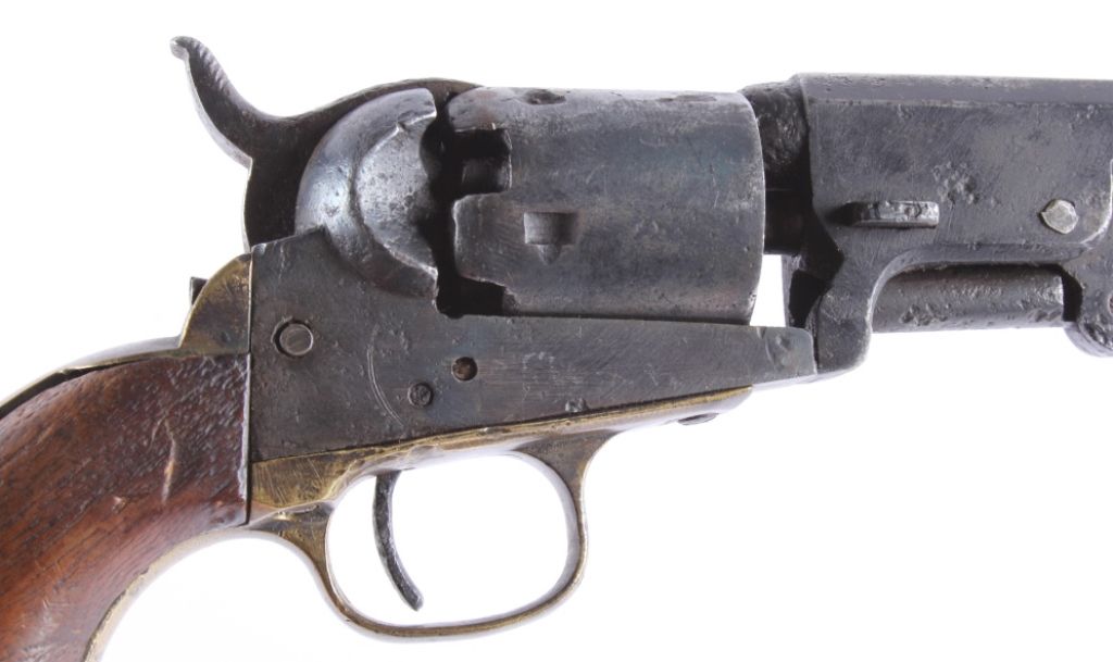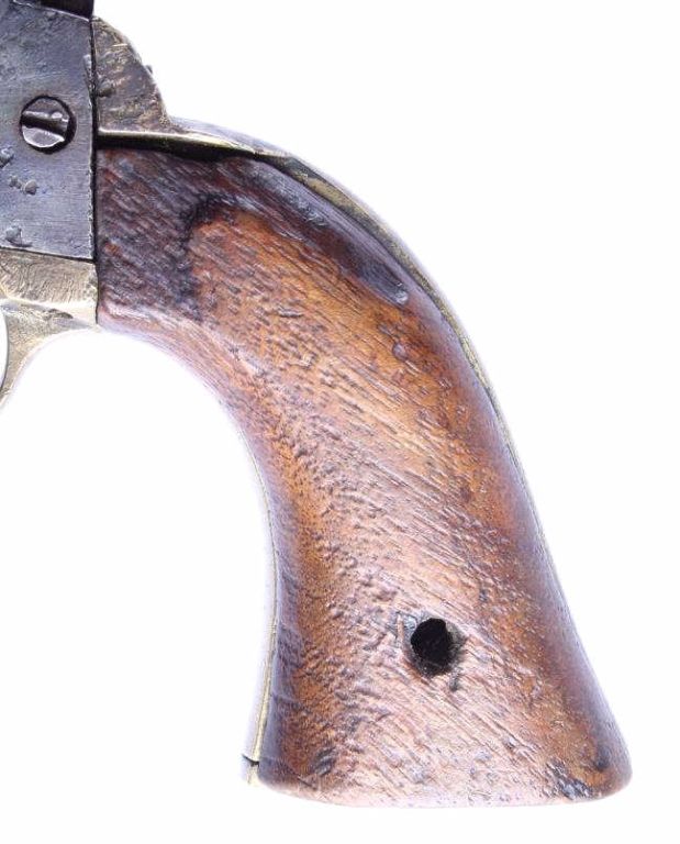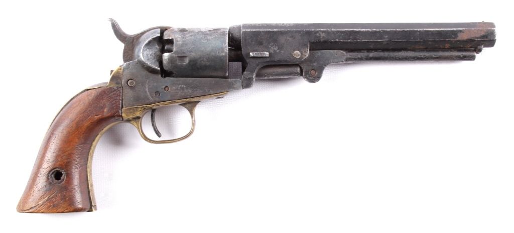 This is an original Colt Model 1849 Pocket Percussion Revolver in a .31 caliber. This shows all matching numbers and was manufactured in 1854. The revolver was most likely carried through the entirety of theCivil War and was bought out to Big Sky, Montana area where it was then recovered after a homestead fire. This shows some pitting across the firearm, but is a very early and collectible Colt.