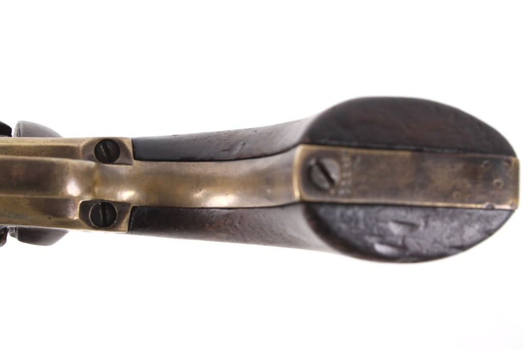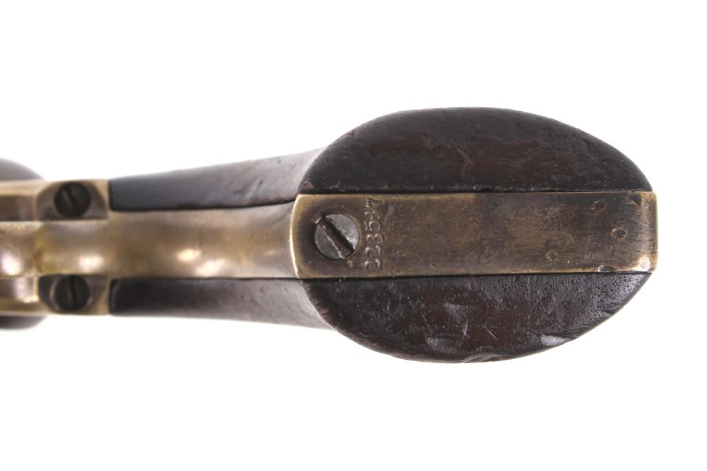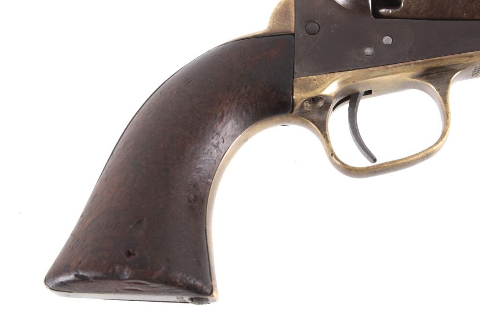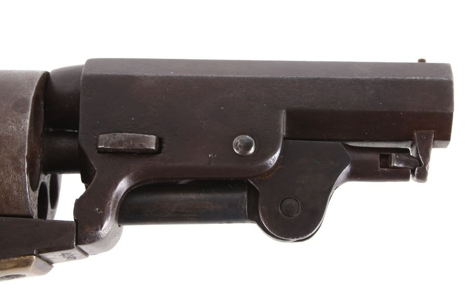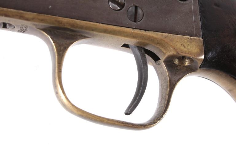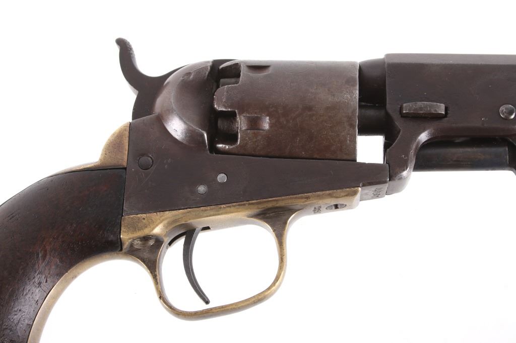 Included in this lot we have a Colt Model 1849 single action percussion cap pocket revolver chambered in .31 caliber. This is a fine, original example .31 caliber, five-shot revolver that found favor with officers and enlisted men as personal weapons during the Indian Wars of the period. Many of these also saw service in the gold fields of California, the settling West, and in about all urban areas during this very turbulent time of Post-Civil War Reconstruction. The 1849 was one of Colt’s most popular designs that was large enough for aimed fire, but small enough to conceal in a waste band or unobtrusive holster. They also found favor with gamblers and “ladies of the evening.” The revolver displays a 3" barrel, walnut grips, brass trigger guard, six shot cylinder, and warm patina. The top of the barrel is marked with "ADDRESS SAM’L COLT NEW-YORK US AMERICA” in faint faded lettering with only a few letters fully visible. The left side of the frame is marked "COLT’S PATENT” with the cylinder marked with the serial number and a faded etched design. The revolver features nice, overall aged patina metal. Fine walnut grips show only normal light wear. This example also shows a mellow, uncleaned brass back strap and trigger guard. The revolver shows matching serial number across the piece with the cylinder missing the first number. This is one of the most popular and successful of the Colt percussion revolvers and a key model for any Colt or Old West collection. Serial Number: 223587. This firearm qualifies as an Antique and does not require FFL Transfer or NICS Background Check.