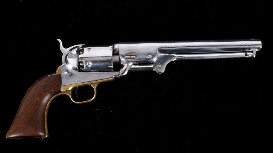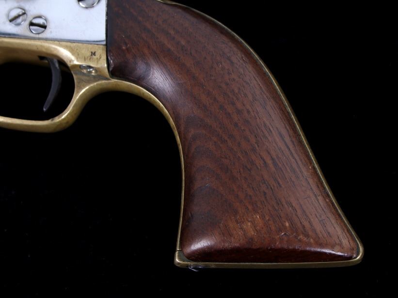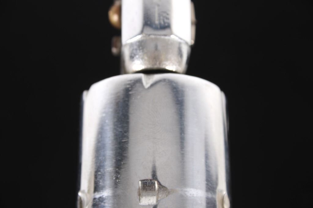 For your consideration in this lot we have a pre-Civil war Colt model 1851 Navy percussion cap revolver chambered in .36caliber. This fine example of Colt’s most famous and popular model percussion revolver features a 7 1/2" long barrel, six shot cylinder, brass trigger guard, walnut grips, and refinished nickel plating. This fine example of Colt’s most famous and popular model percussion revolver with the top of the barrel marked "ADDRESS SAML COLT NEW-YORK CITY" with the left side of the frame is marked "COLTS PATENT U.S.". The cylinder shows deep file marks across the front of the piece with percussion cap system. The revolver features matching serial numbers on the barrel, frame, trigger, cylinder, and grip butt. The Colt 1851 Navy was one of the most classic side arms of the Civil War and later in the Old West. Wild Bill Hickock was carrying a pair of Colt 1851 Navy revolvers when he was gunned down in Deadwood, South Dakota on August 2, 1876. The colt shows good condition overall with some light wear across the brass and wood grips, with the nickel finished redone. Mechanically the piece shows a tight action with good timing on the cylinder. Serial Number: 70751. This firearm qualifies as an Antique, and does not require FFL Transfer or NICS Background Check.
