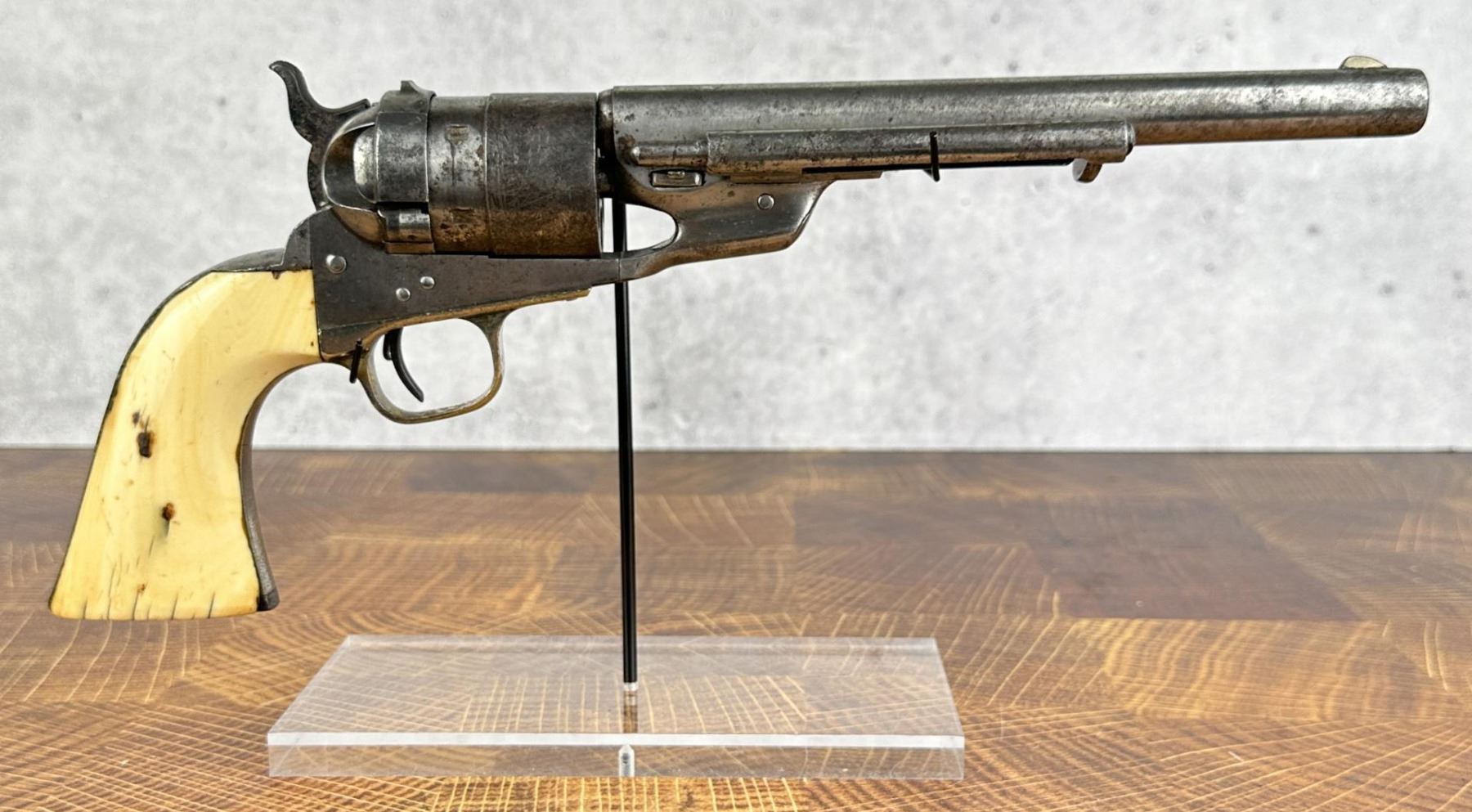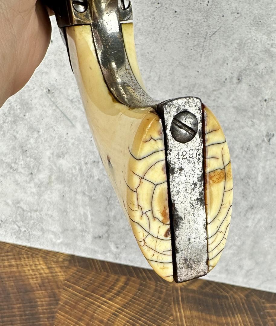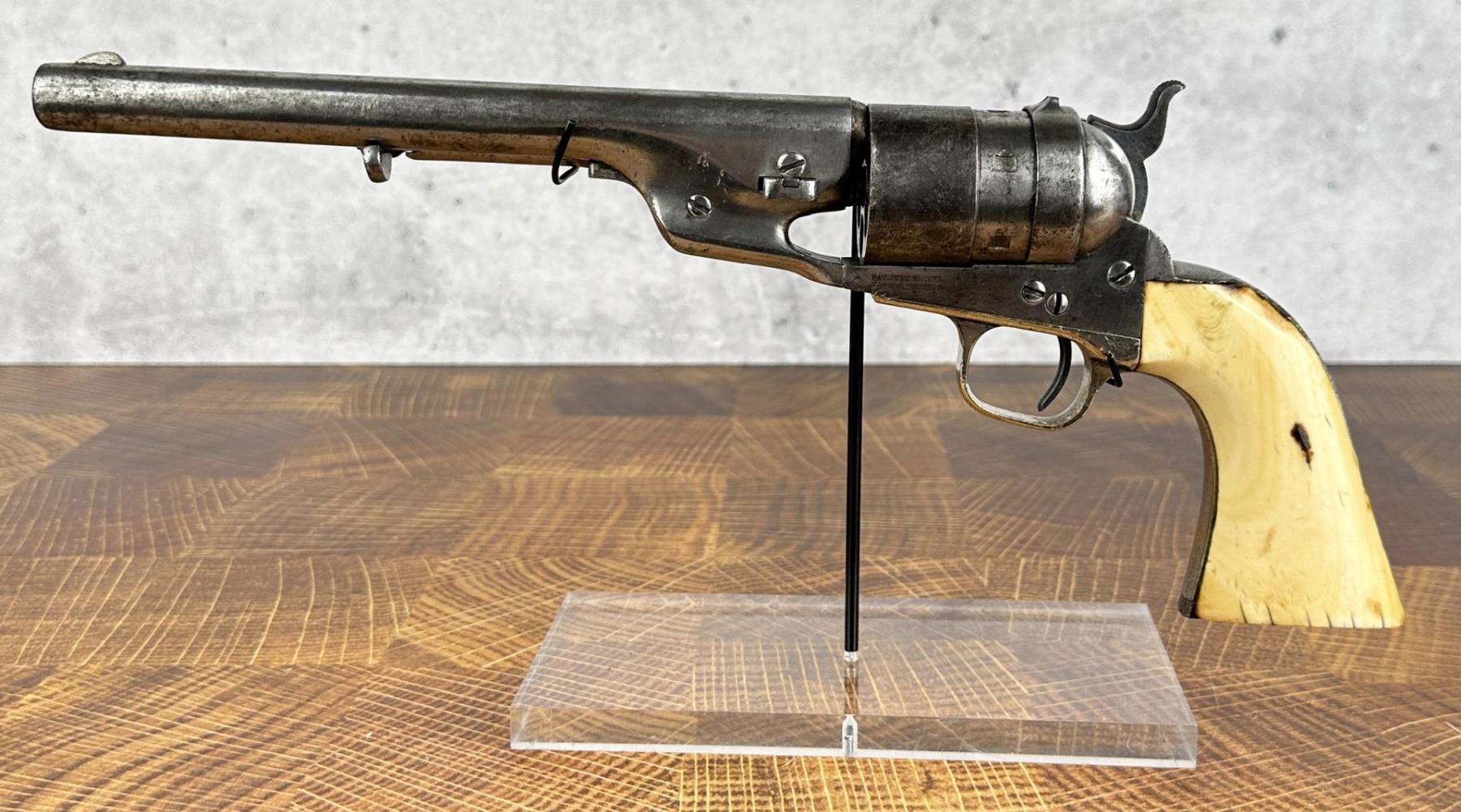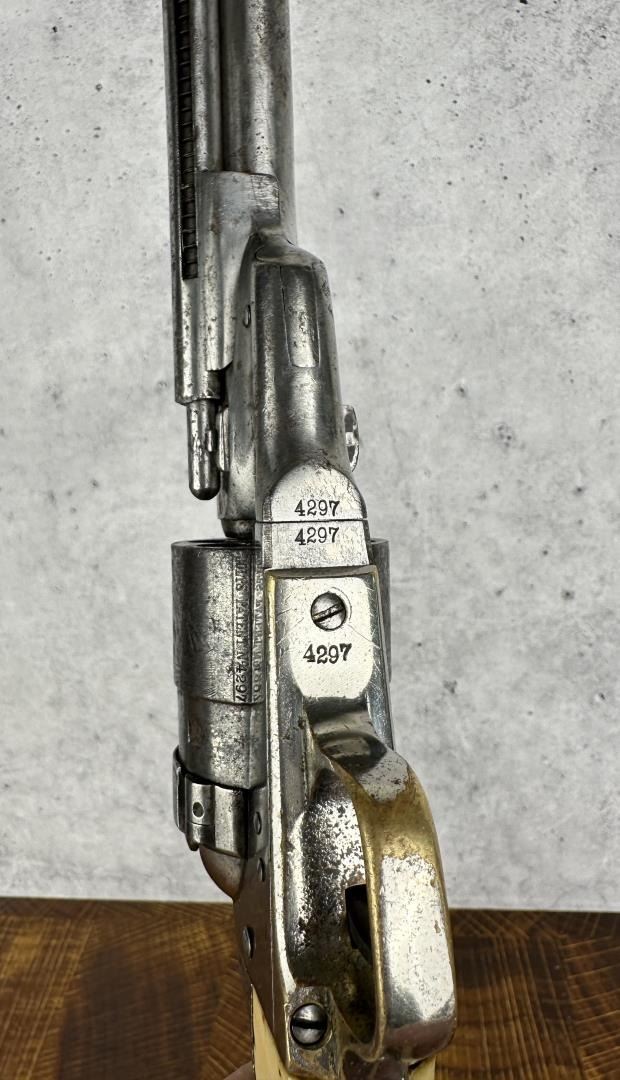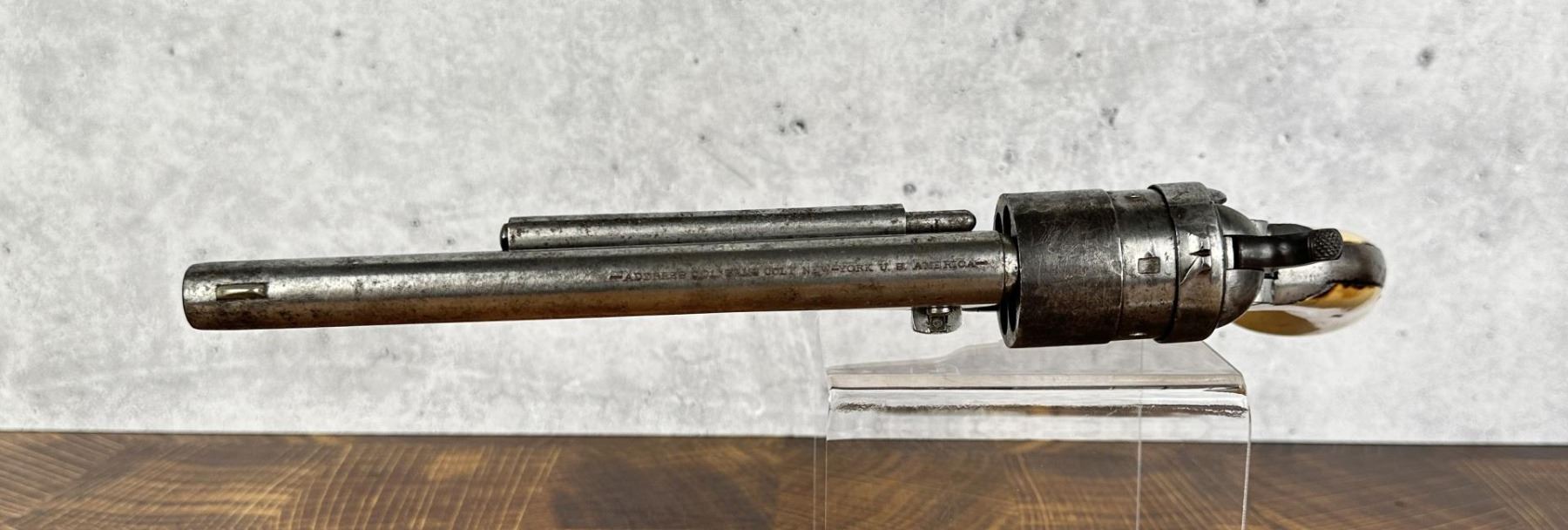 8" barrel. Made in 1861. Numbers matching, mechanically functional. Silver wash still present on trigger guard. Superb example.