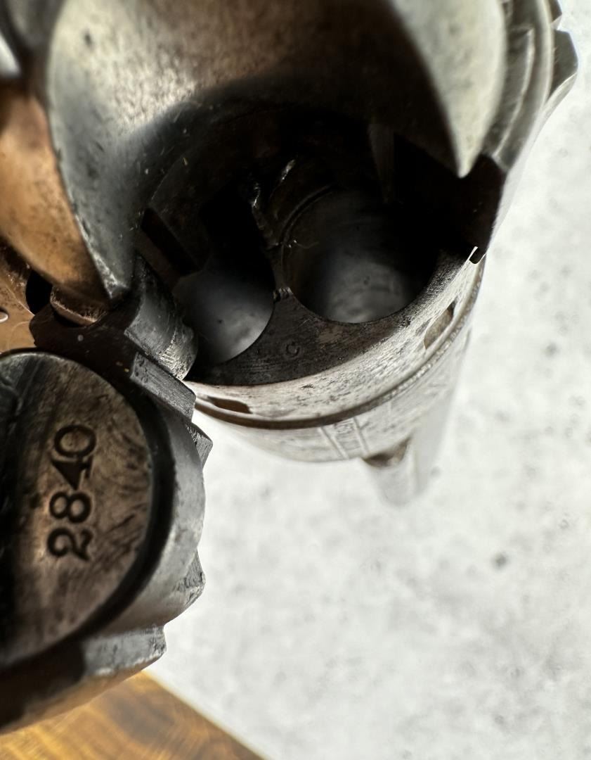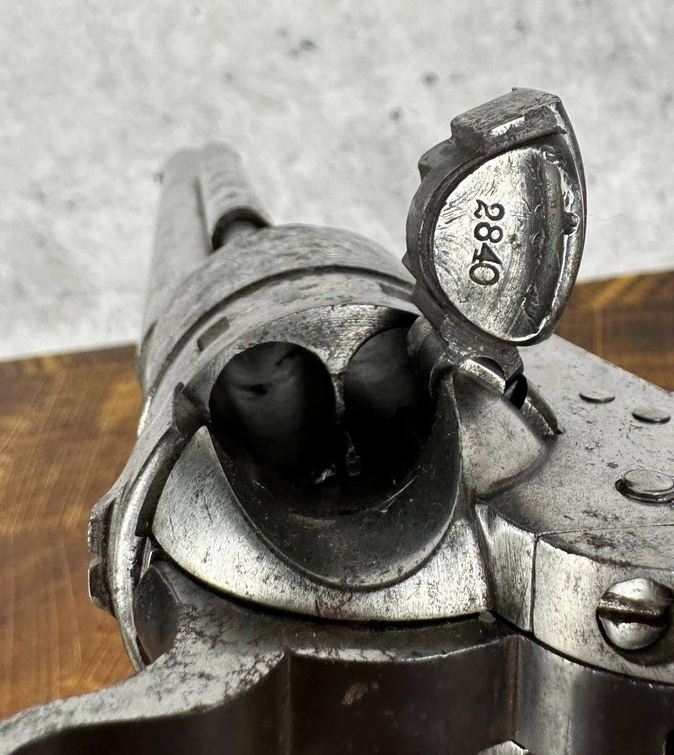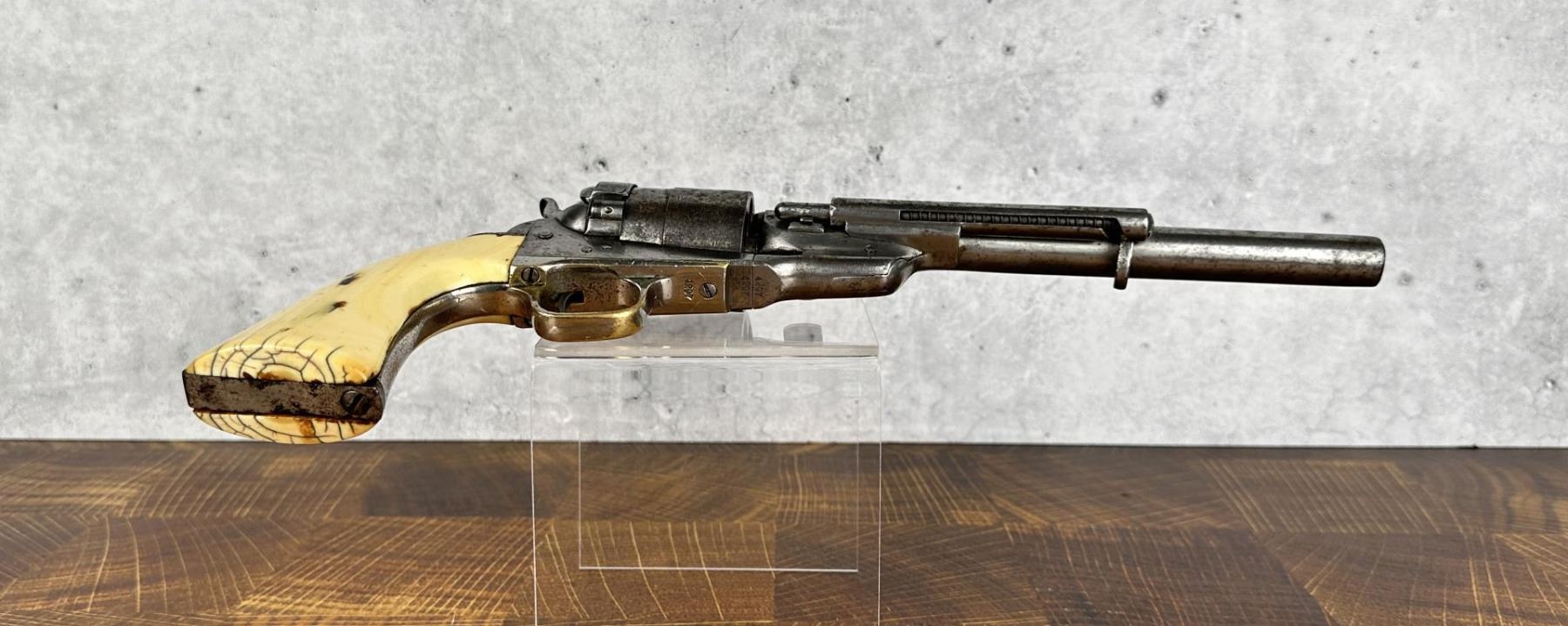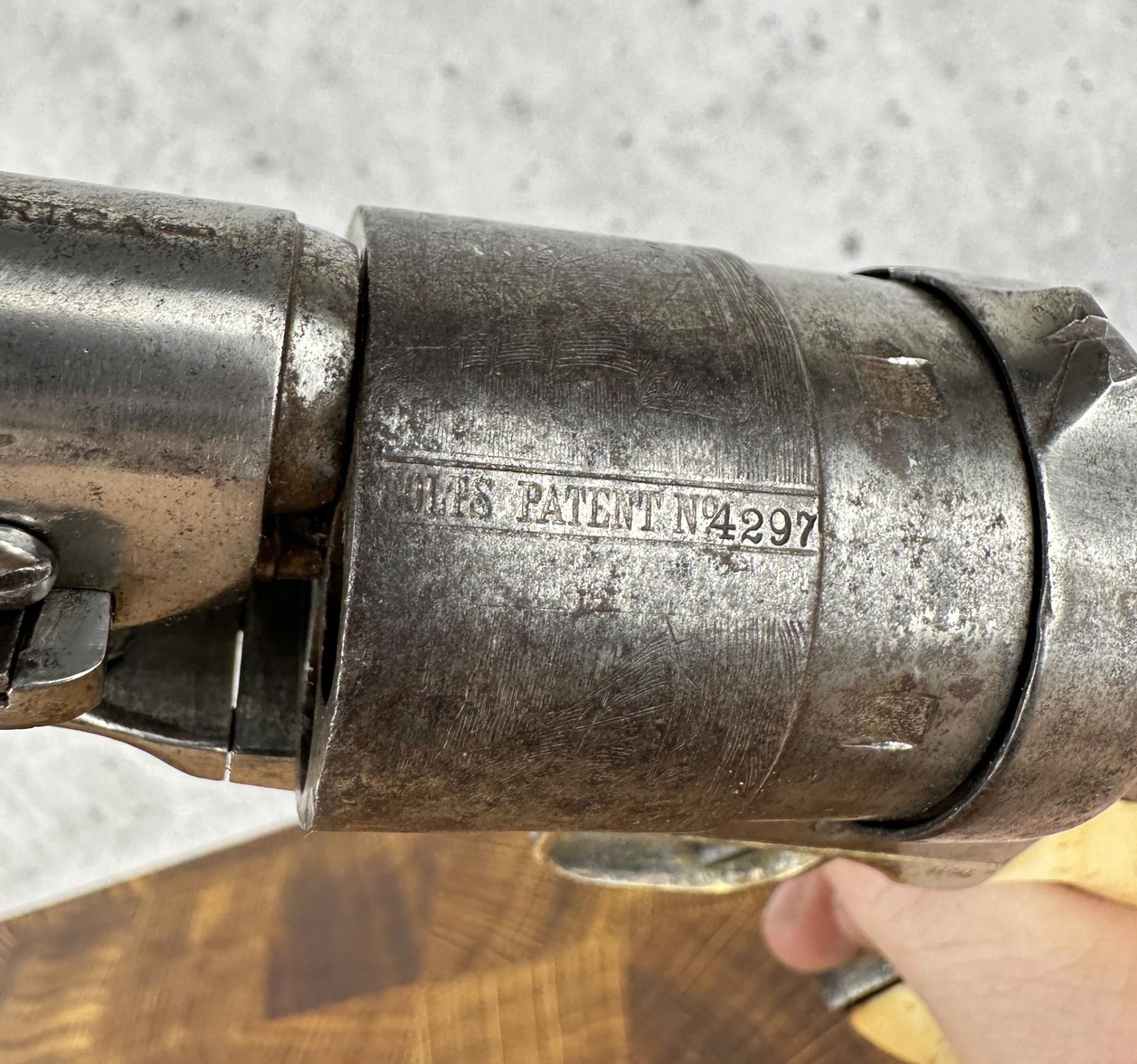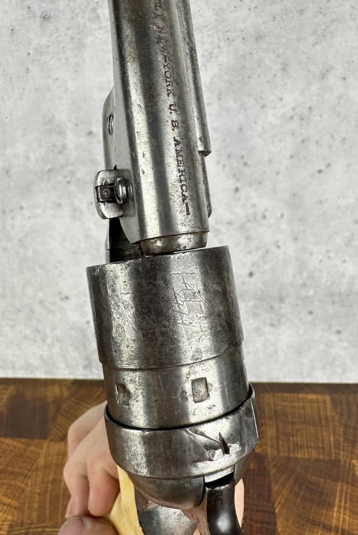 8" barrel. Made in 1861. Numbers matching, mechanically functional. Silver wash still present on trigger guard. Superb example.