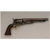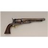 Colt Model 1860 Army revolver in .44 percussion caliber showing U.S. Martial marking serial number 76133. This Colt shows faint traces of original blue and case hardening mixed in with a patina finish.There is some scattered light to moderate erosion and surface pitting with a couple of areas of slightly heavier pitting on the left front of the muzzle and a couple small areas also on the cylinder. The barreladdress is sharp. The cylinder shows 30% to 50% cylinder scene going slightly light and the grips both show outlines of cartouches. The right grip shows a name carved in block letters that we cannot decipher. There arebattle notches carved on the edge of each grip and all matching visible serial numbers. There is some muzzle wear and the sight has been reduced in height. The action is good and the interior is good. There are somemarks and nicks around the wedge on the right side of the barrel lug and there are many scattered dings, mars and scratches from military use. A slightly above average Civil War era Army Colt. Est.: $900-$1,800.