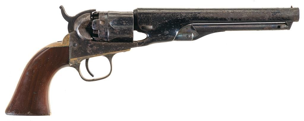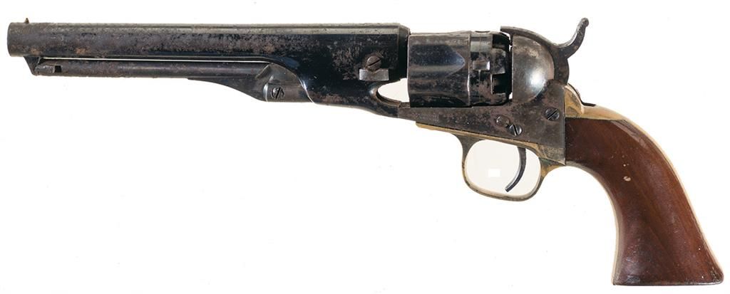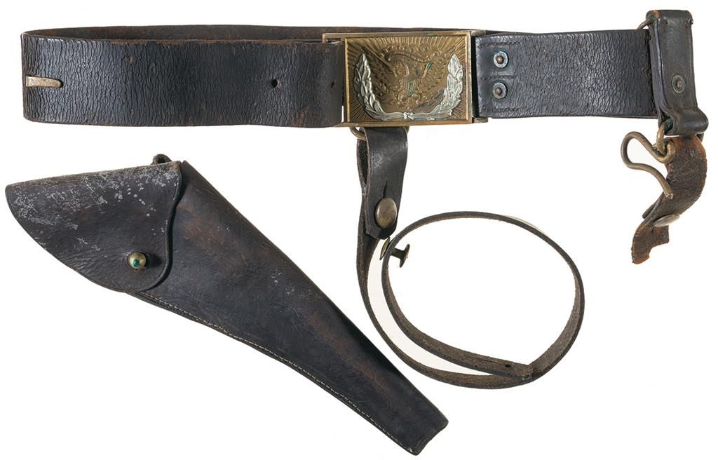 Manufactured in 1863. With unmarked leather Slim Jim style flap holster and belt with brass buckle (good).