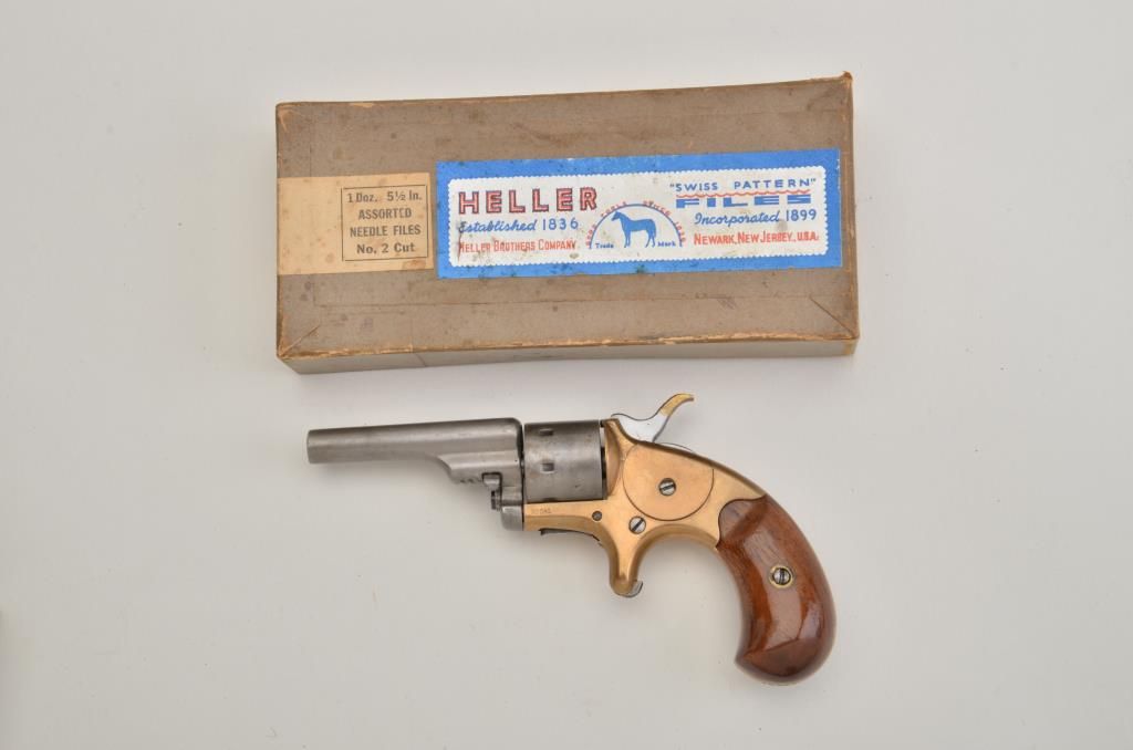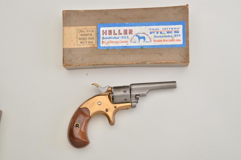 Colt Model 1872 Open Top spur trigger revolver, .22 cal., 2-1/2” barrel, brass frame, wood grips,