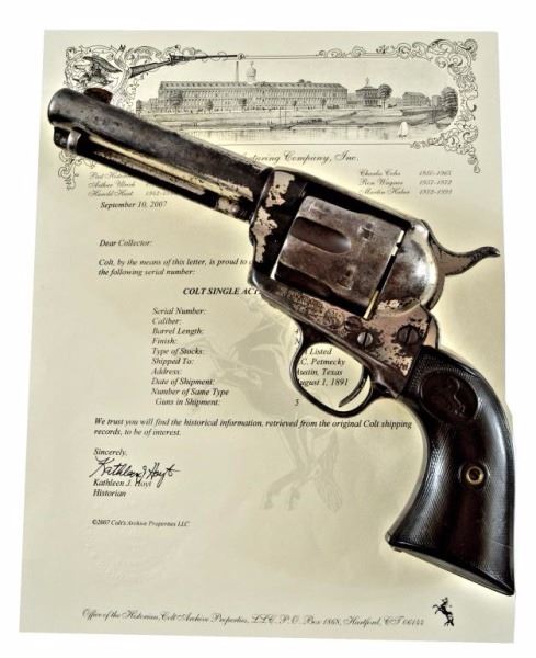 4 3/4" barrel. Nickel Shipped to J,C. Petmecky Austin Texas. With Colt factory letter,