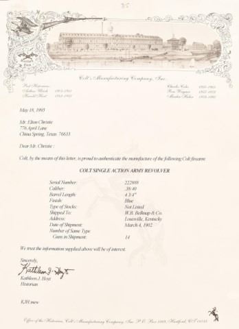 * Colt 1873 Single Action .38-40 cal with factory letter, shipped 1902. 5" barrel.