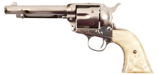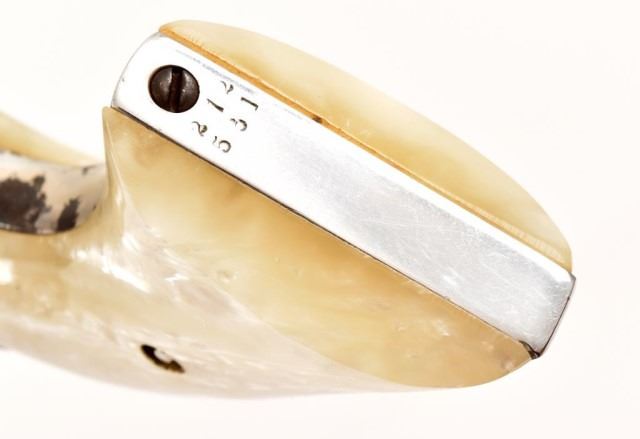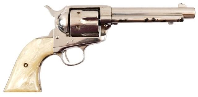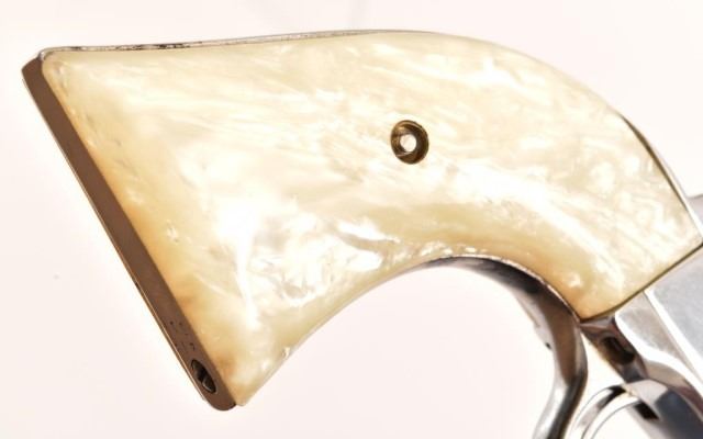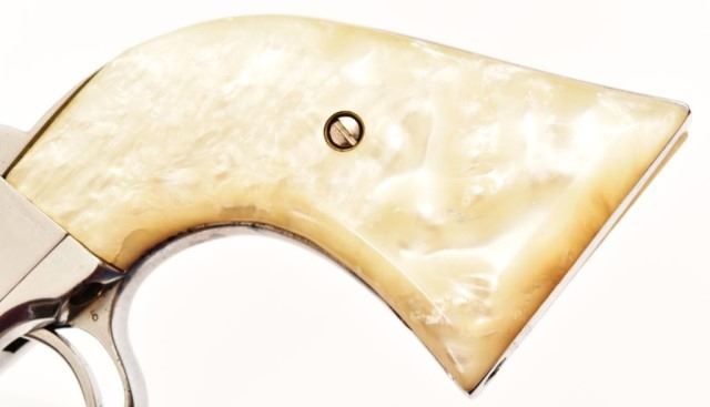 Nickel plated, bakelite pearl grips, 5.5" barrel