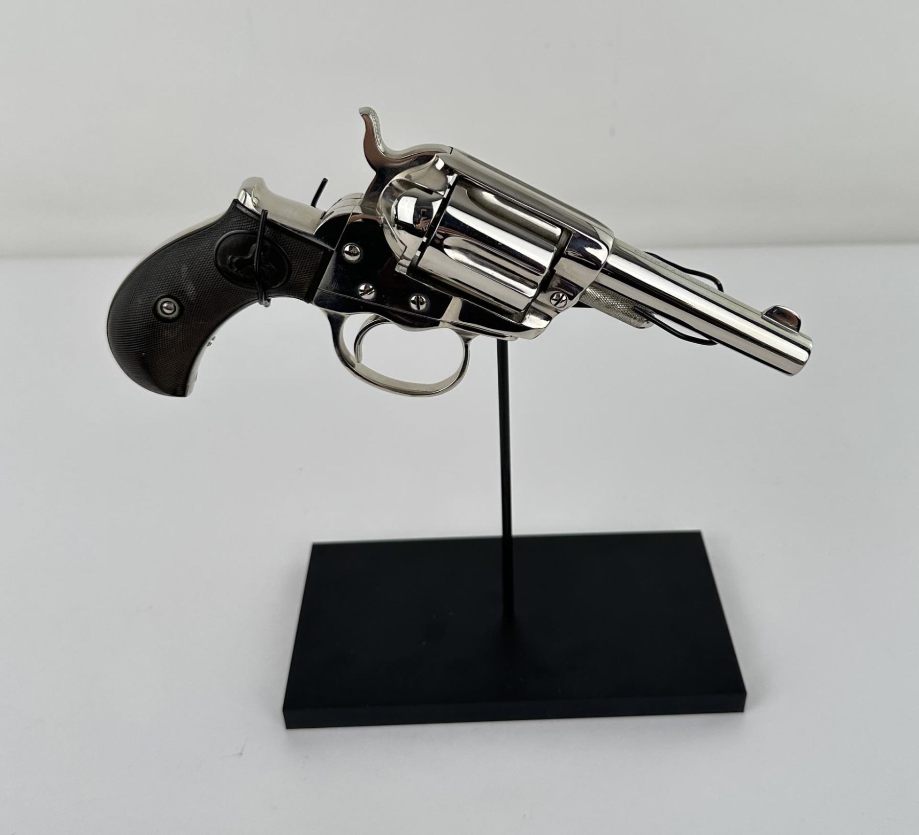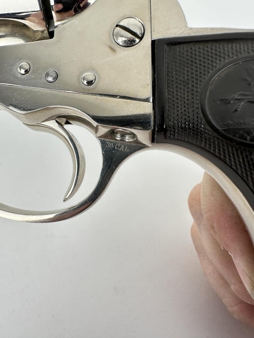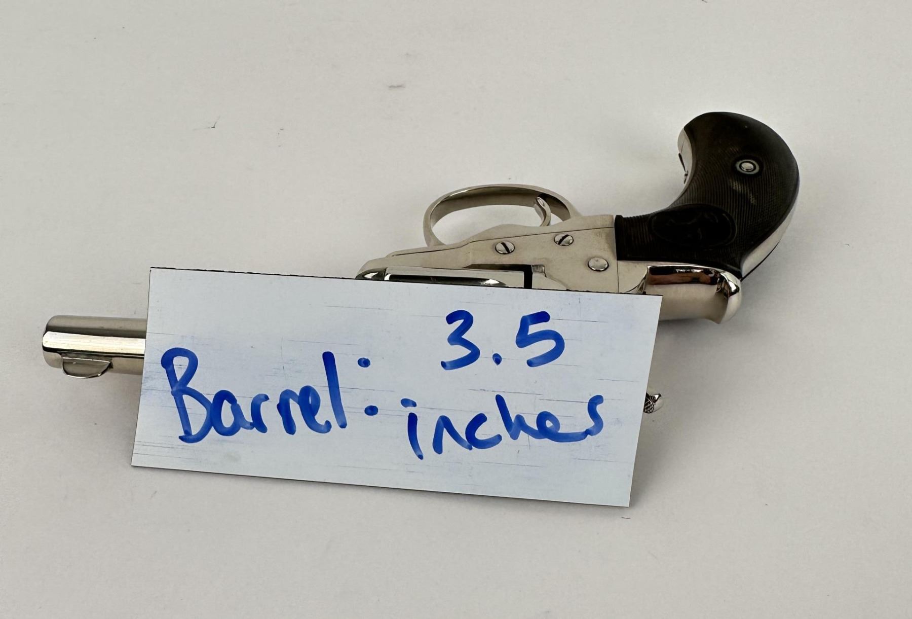 3 1/2" barrel. Has been renickeled, double action function does not work. Made in 1879. Antique does not require FFL Transfer. Black powder guns cannot be shipped to addresses in Hawaii, Illinois, Michigan, New Jersey & Rhode Island. No sales to these states, any bids from these states will result in immediate termination of your bidding account. No International Sales.