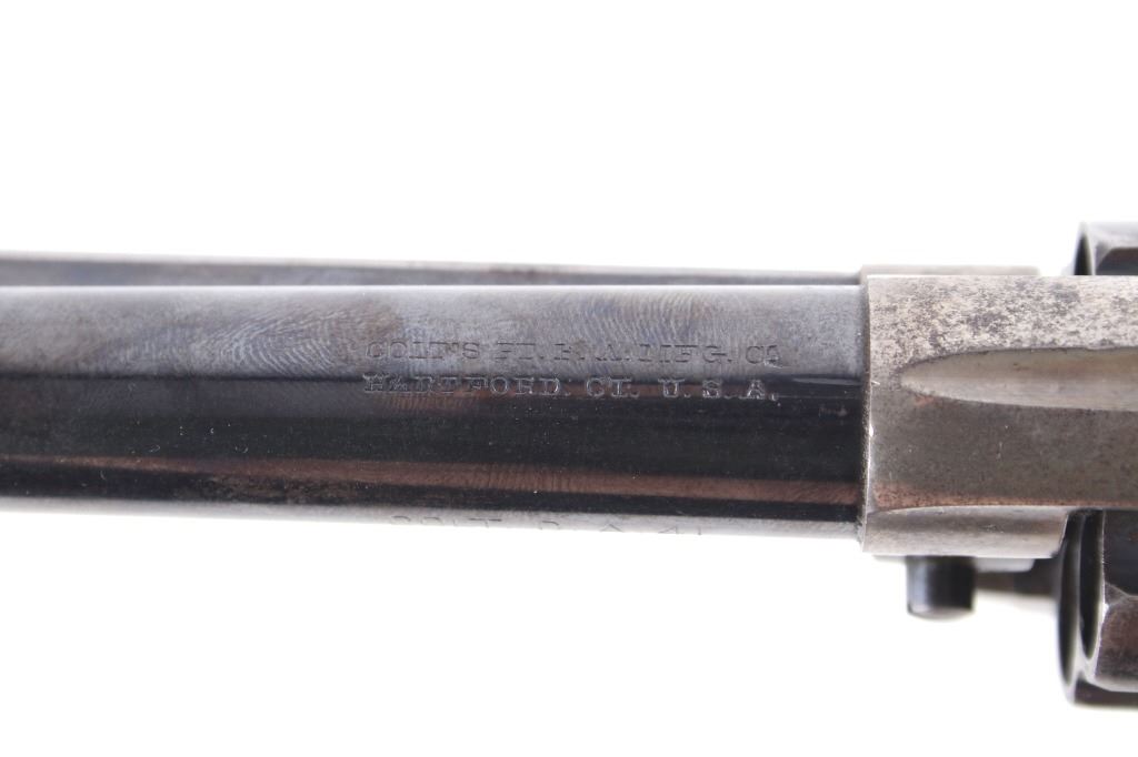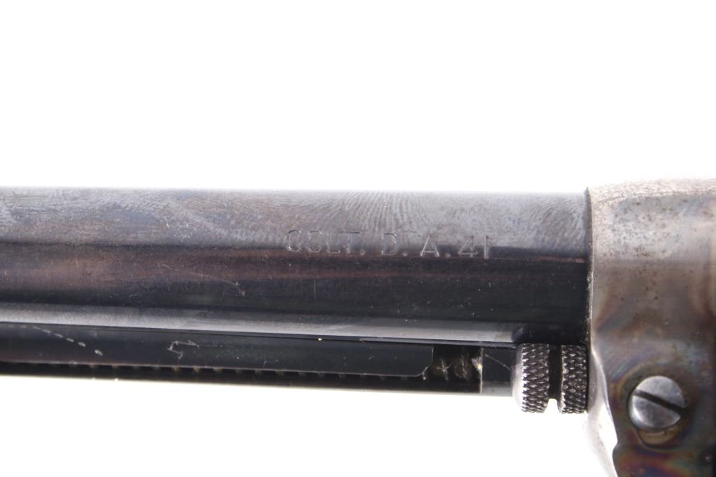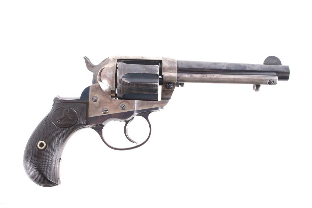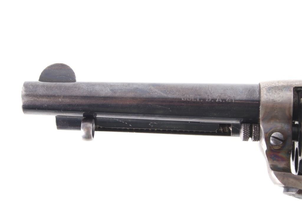 Featured in this lot we have a Colt model 1877 thunderer 41 double action revolver chambered in .41 caliber. This revolver was manufactured by Colt in 1898. It displays a 4 1/2" long round barrel, hard rubber grips, six shot cylinder, ejector rod, and double action trigger system. The pistol shows a blue'd finish across the barrel, cylinder, trigger, and trigger guard with the frame showing a case hardened finish. The top of the barrel is marked "COLT'S PT. F. A. MFG. CO HARTFORD. CT. U.S.A." with the left side reading "COLT. D.A. 41". The left side of the frame is marked with patent dates and the Colt logo. Mechanically the revolver shows wonderful timing and crisp trigger. The revolver shows good condition overall with light wear due to age and handling. It weighs 1lbs 8oz. Serial Number: 107876. This firearm qualifies as an Antique, and does not require FFL Transfer or NICS Background Check.