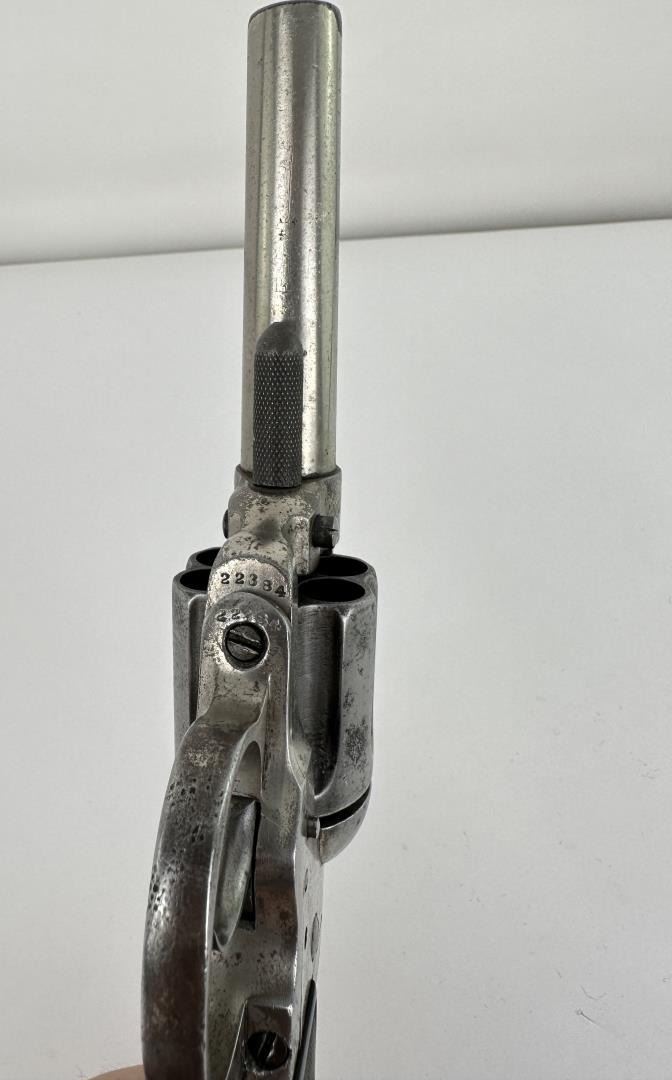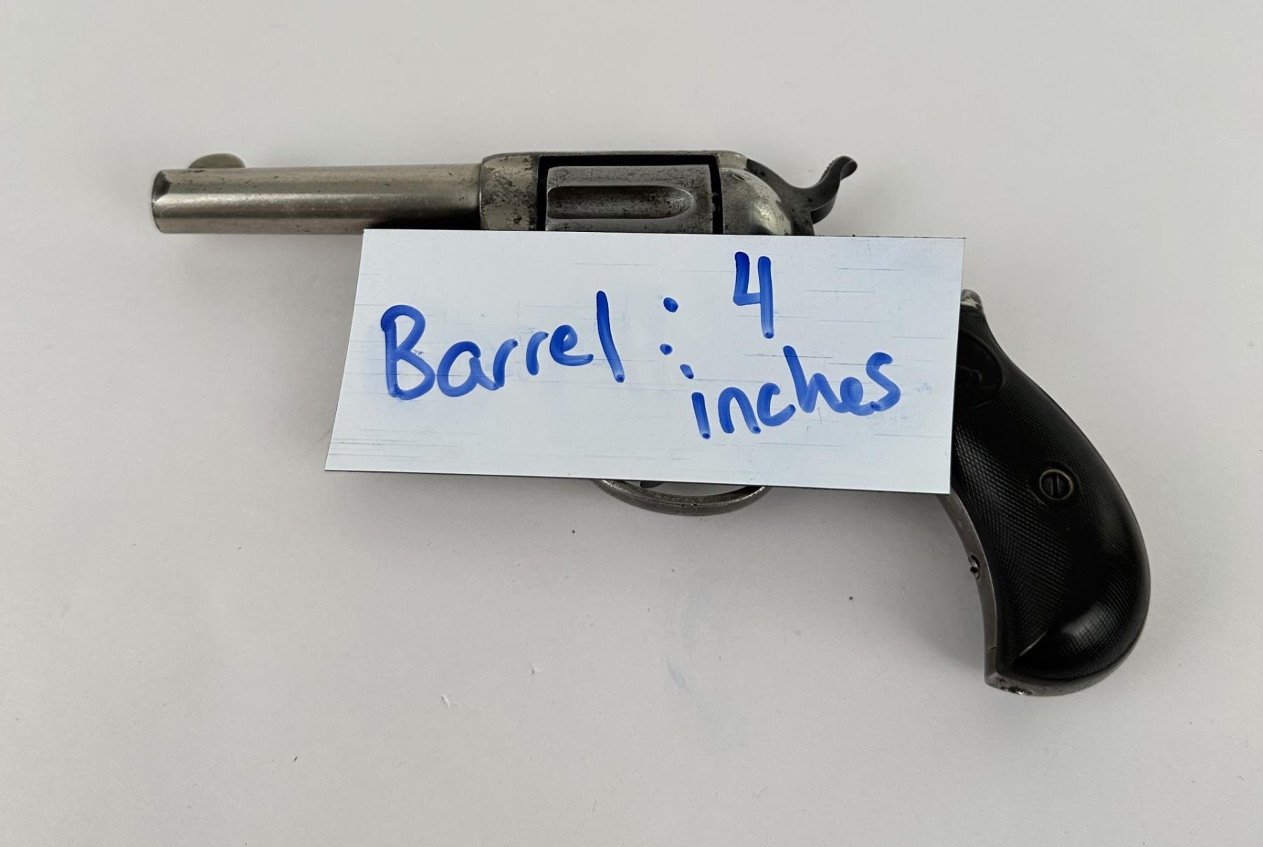 Nice revolver, appears to be in original condition. Made in 1880. 4" barrel. Antique does not require FFL Transfer. Black powder guns cannot be shipped to addresses in Hawaii, Illinois, Michigan, New Jersey & Rhode Island. No sales to these states, any bids from these states will result in immediate termination of your bidding account. No International Sales.