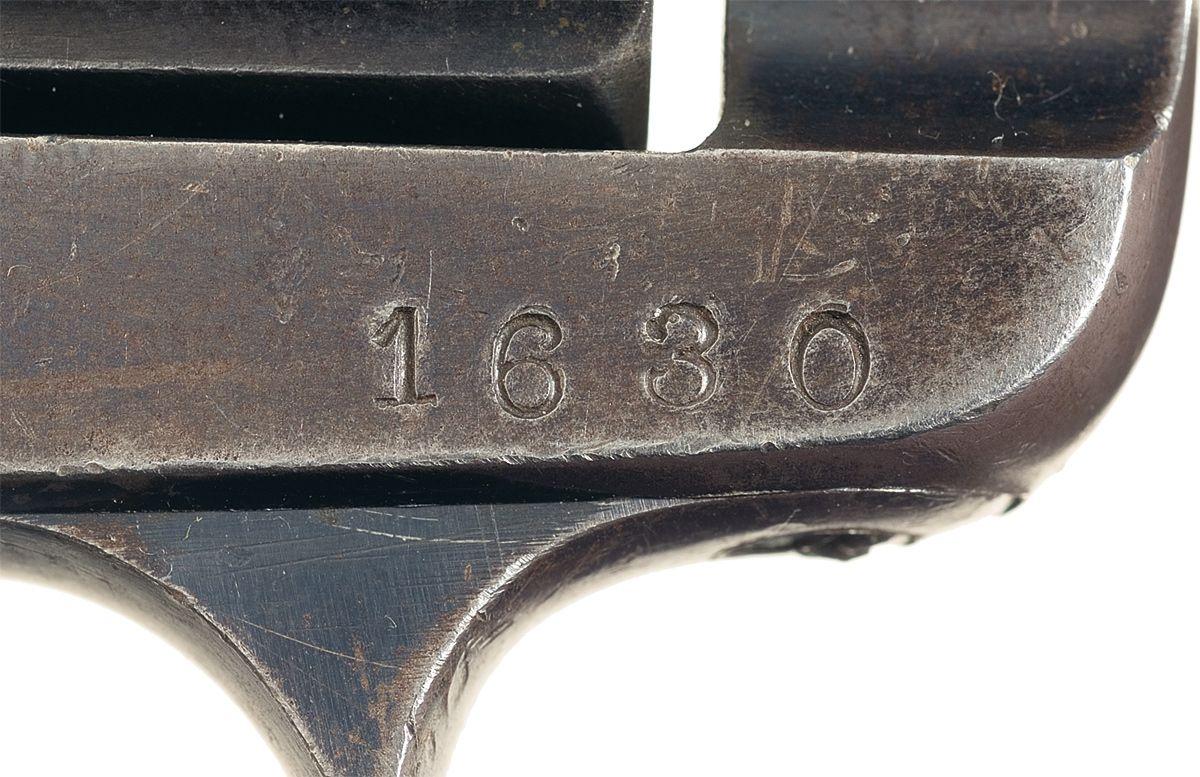 Produced in 1899, with standard markings and features with "H.OP" stamped on the right side of the barrel at the breech and the right side of the frame is marked "1630".