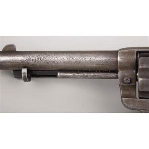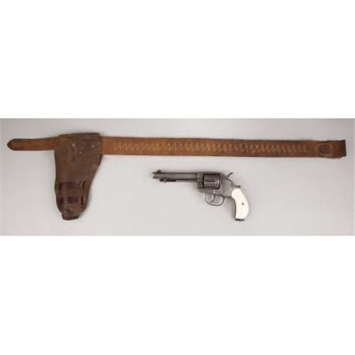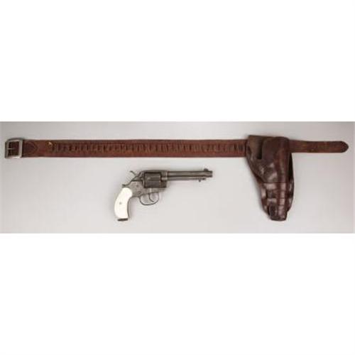 <B>COLT MODEL 1878 "FRONTIER" DOUBLE ACTION REVOLVER</B></I> - Serial number 42419, circa 1880s. 5 1/2” barrel in .44-40 calibre. Left side of barrel roll marked “COLT FRONTIER SIX SHOOTER”. All features as standard for this model with the exception of the ivory grips. Barrel address legible. Action functions but will not hold on full cock. Accompanying this lot is an old brown two loop holster with cartridge belt.<BR><BR><B>Condition:</B></I>All metal surfaces cleaned with light to heavy pitting throughout. Ejector housing, rod and base pin are all replacement components. Ivory grips are new and fit perfectly to the revolver strap. Leather belt and holster are soft and supple. The plugged holster is untrimmed. The face of the holster has been stamped by using single letter die stamps “ALBERT E. SIGAL”. The cartridge belt is stamped 4R/38C near the plated clipped buckle. The belt and holster are not matching<BR><BR><b>Shipping:</b> Miscellaneous Collectibles, Larg (<a target="_blank" href="http://www.heritageauctions.com/common/shipping.php">view shipping information</a>)