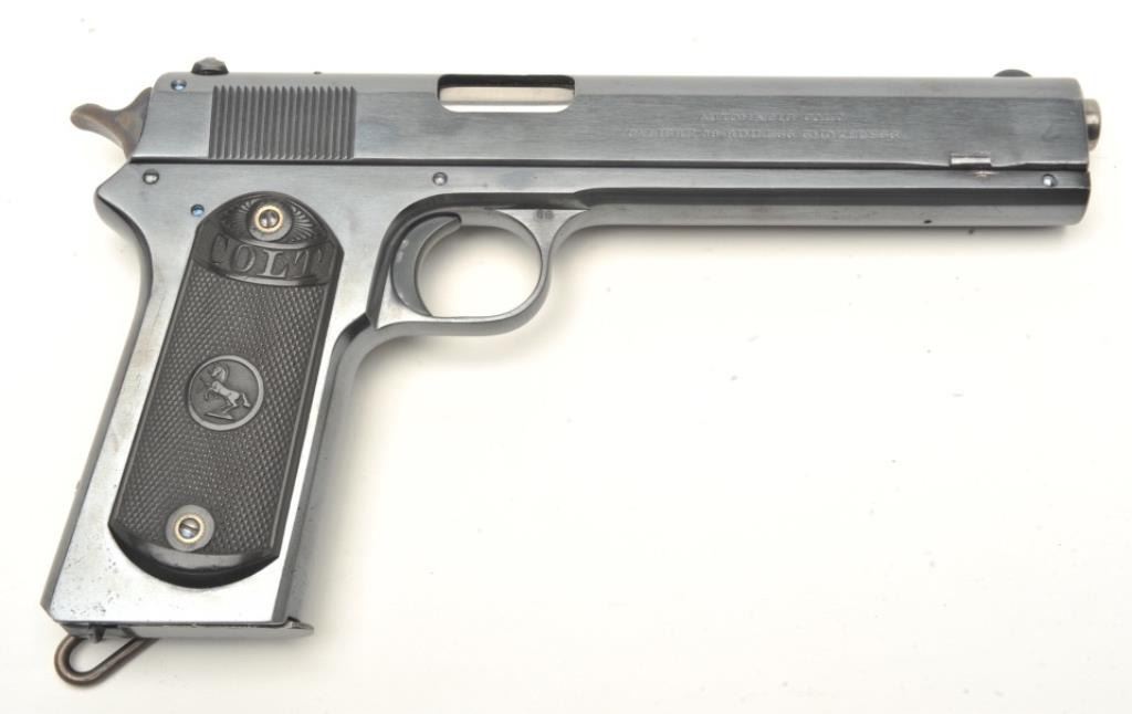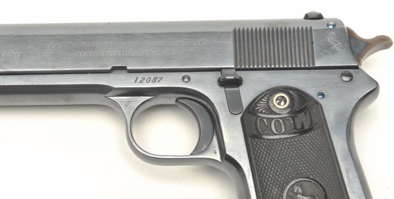 6” barrel, blued finish, checkered black hard rubber grips, S/N 12087, in overall excellent original condition displaying approximately 99% original finish, crisp action, sharp markings, excellent bore and grips, fiery original case colors on hammer. (C&R/PPT). Est.: $3,000-$6,000.