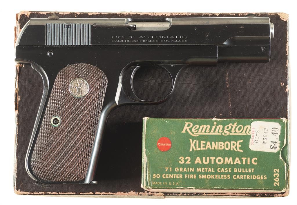 With original box numbered to the gun and 50 count box of Remington 32 Automatic ammunition.