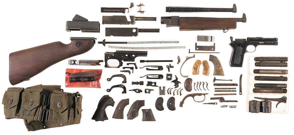 Colt Model 1903 Pocket Hammer Pistol Frame with Assorted Gun Parts, including Thompson SMG Components