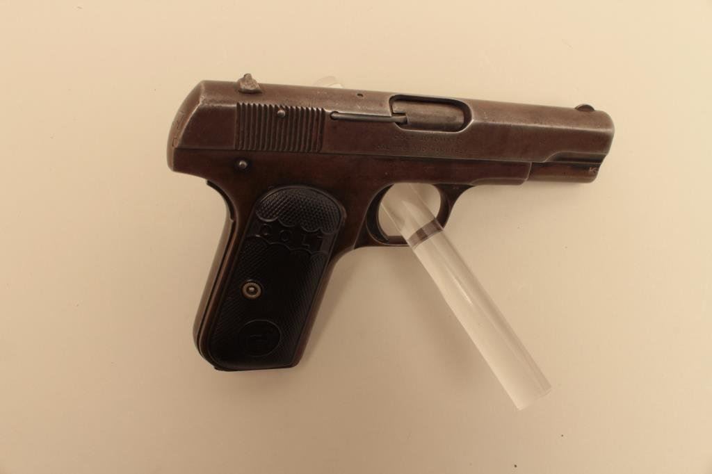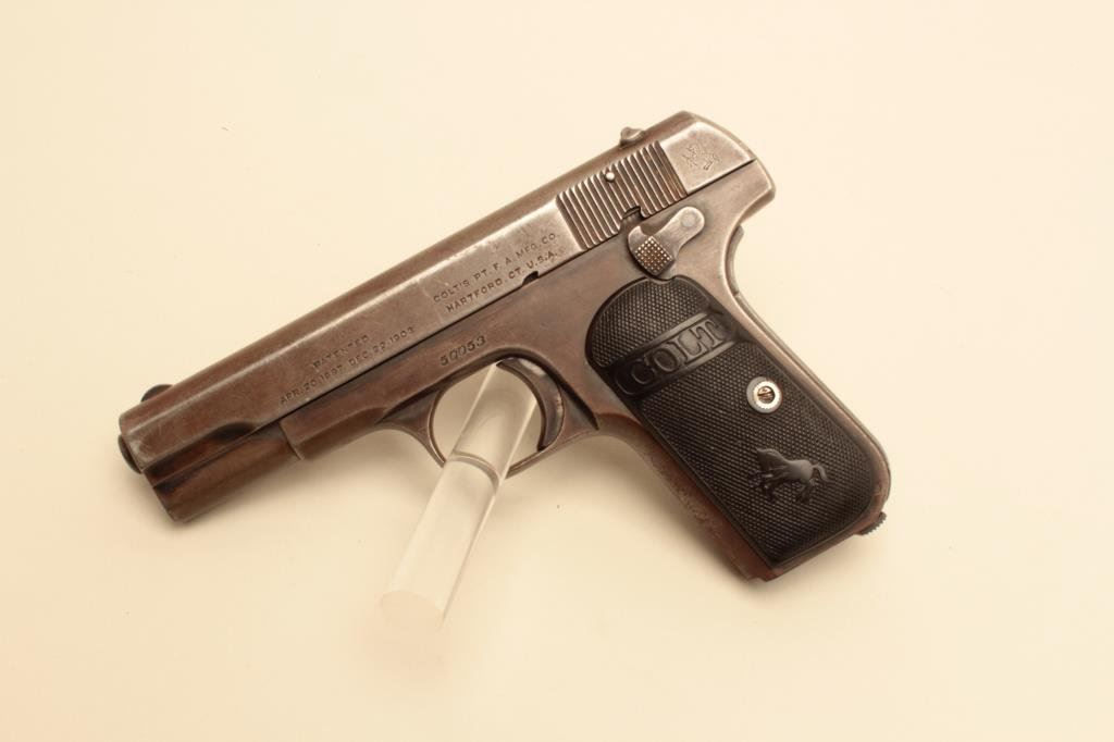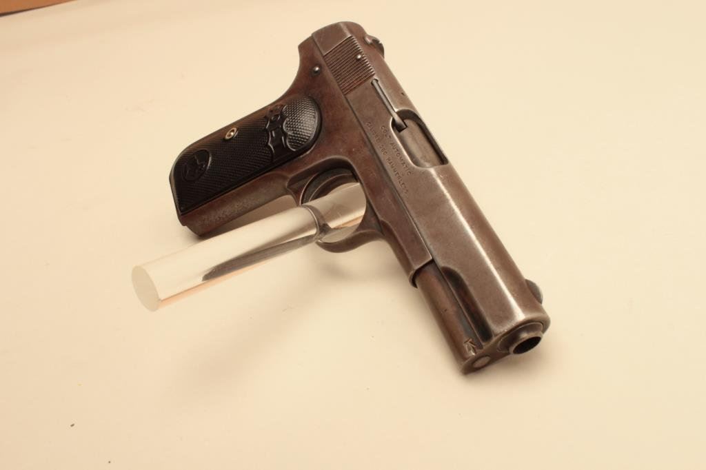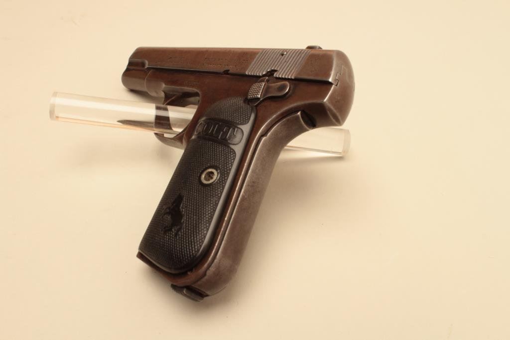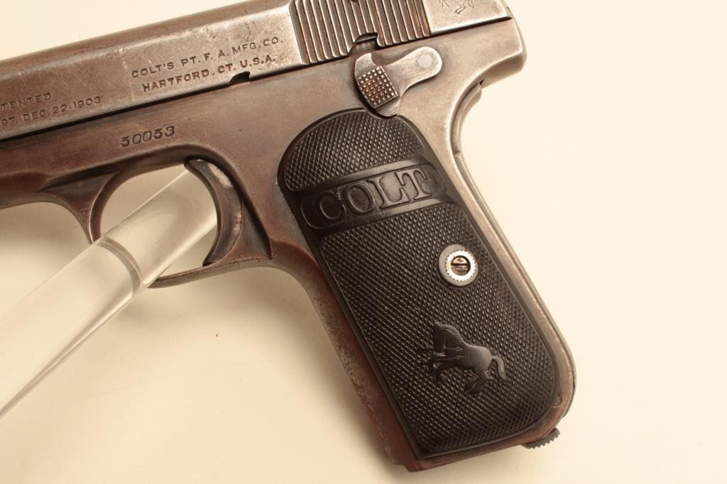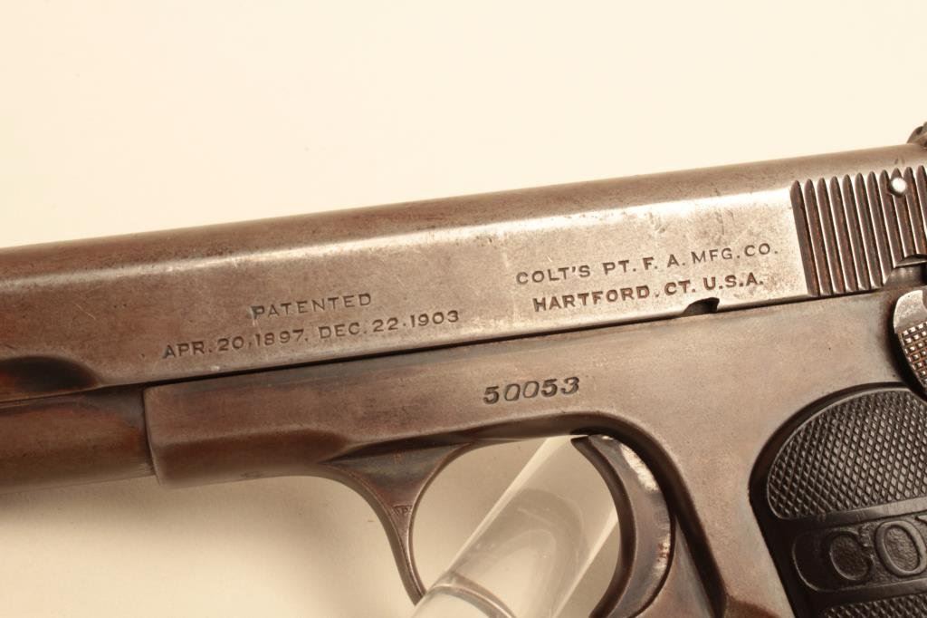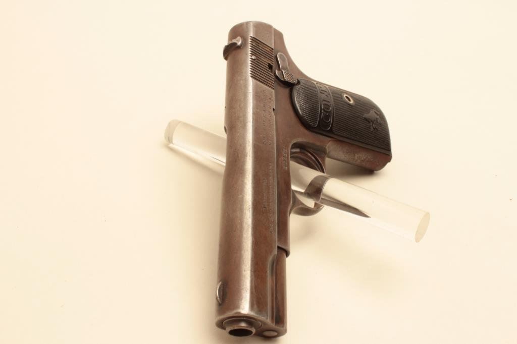 blued finish, checkered hard rubber grips, no magazine, S/N 50053, in overall good condition showing a grey/brown patina to metal surfaces, crisp action, good markings and bore with some light scattered pinprick pitting; left grip is later style than the right grip but both good condition. (C&R/PPT). Est.: $200-$400.