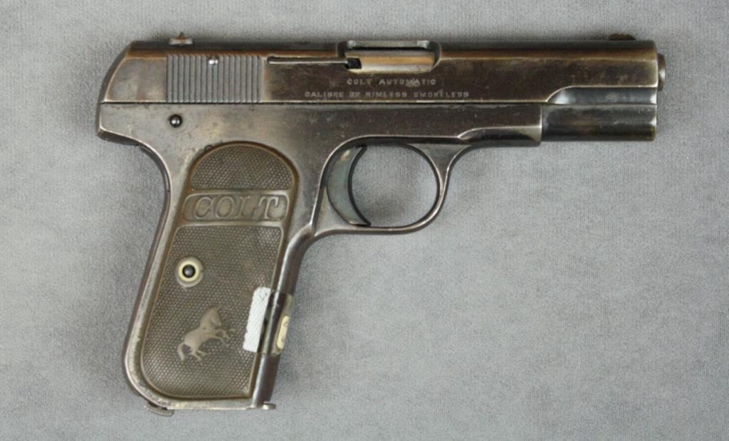 Colt Model 1903 semi-auto pistol, .32 cal.,  4” barrel, blue finish, checkered hard rubber  grips, #