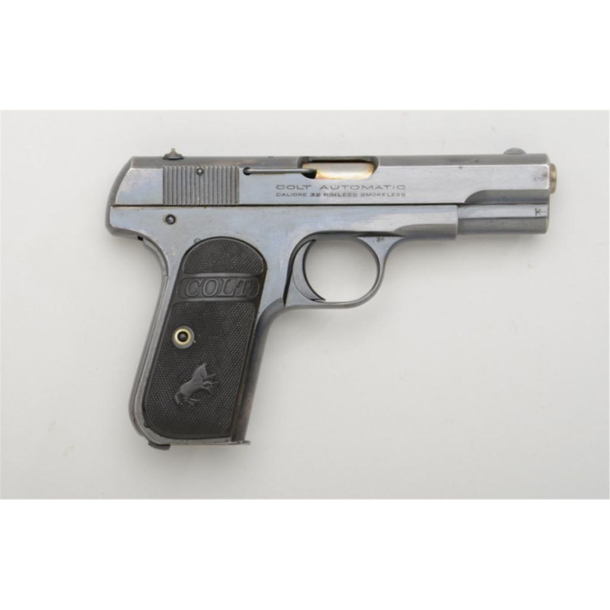 Colt Model 1903 semi-auto pistol, .32 cal., 4” barrel, blue finish, checkered hard rubber grips, #