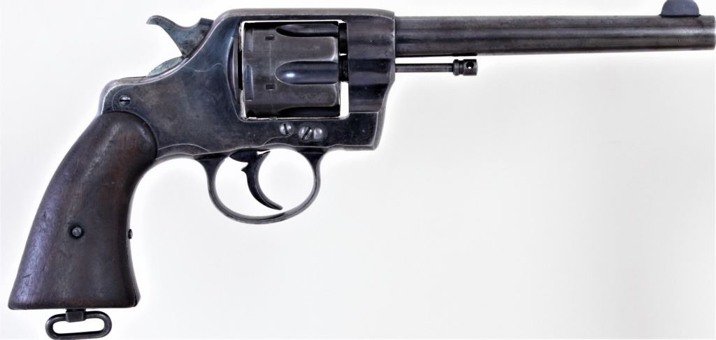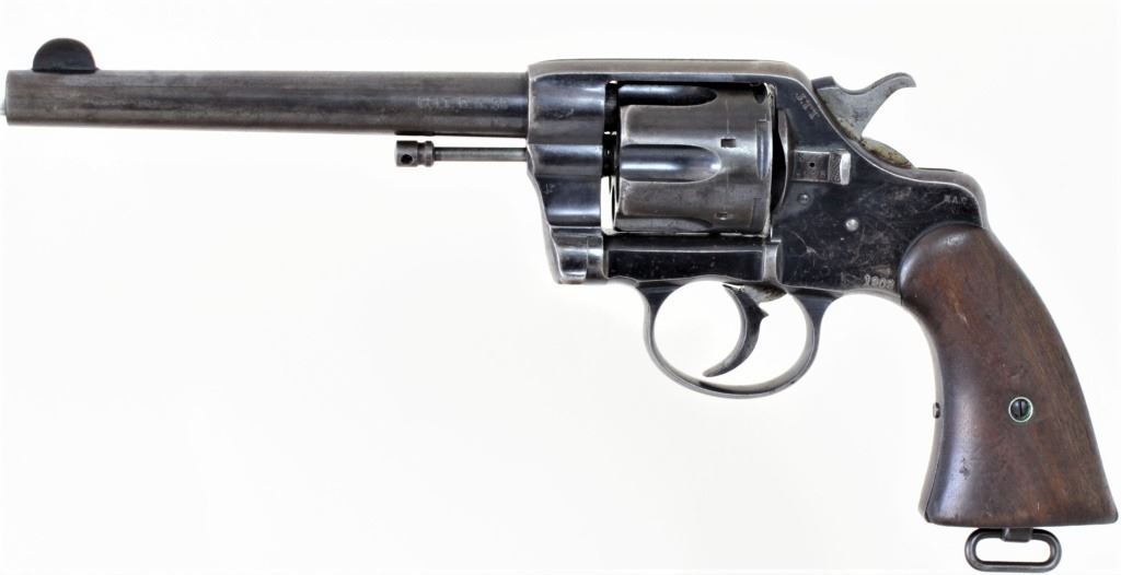 Colt Model US Army 1901 .38 cal. SN 196135 double action military revolver with standard 6" round barrel, blued finish and walnut grips, shows good to very good original condition, areas of bright blue with remainder drifting to gray, top of barrel showsdouble action military revolver with standard 6" round barrel, blued finish and walnut grips, shows good to very good original condition, areas of bright blue with remainder drifting to gray, top of barrel shows standard 2 line address with 18841888 1895 patent dates, right side of frame shows inspector marks RAC and JTT dated 1903, probably one of a 400 shipment to the US Commanding Officer of Springfield Armory in the year. Original walnut show the inspector marks RAC on both sidesas does face of the cylinder. Functions perfectly on single action hammer won't cock on double action. Mechanics in need of very good cleaning. Bore remains very good. De Accessioned from a state of AZ Museum. FFL / Modern. Est. 600-1200