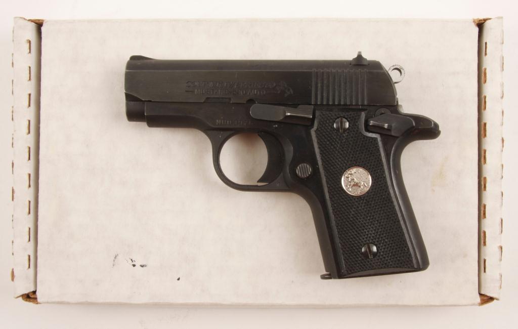Colt Mustang Series 80 Cal .380 SN:MU03976 This favorite pocket Colt is long discontinued and remains in very good+ to fine used condition with 95-98% original blue, just slight normal wear and use.This favorite pocket Colt is long discontinued and remains in very good+ to fine used condition with 95-98% original blue, just slight normal wear and use.