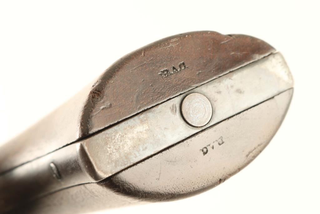 GOOD: Some minor replacement parts; metal smoothly rusted or lightly pitted in places, cleaned or re-blued; principal letters, numerals and design on metal legible; wood refinished, scratched bruised or minor cracks repaired; in good working order.