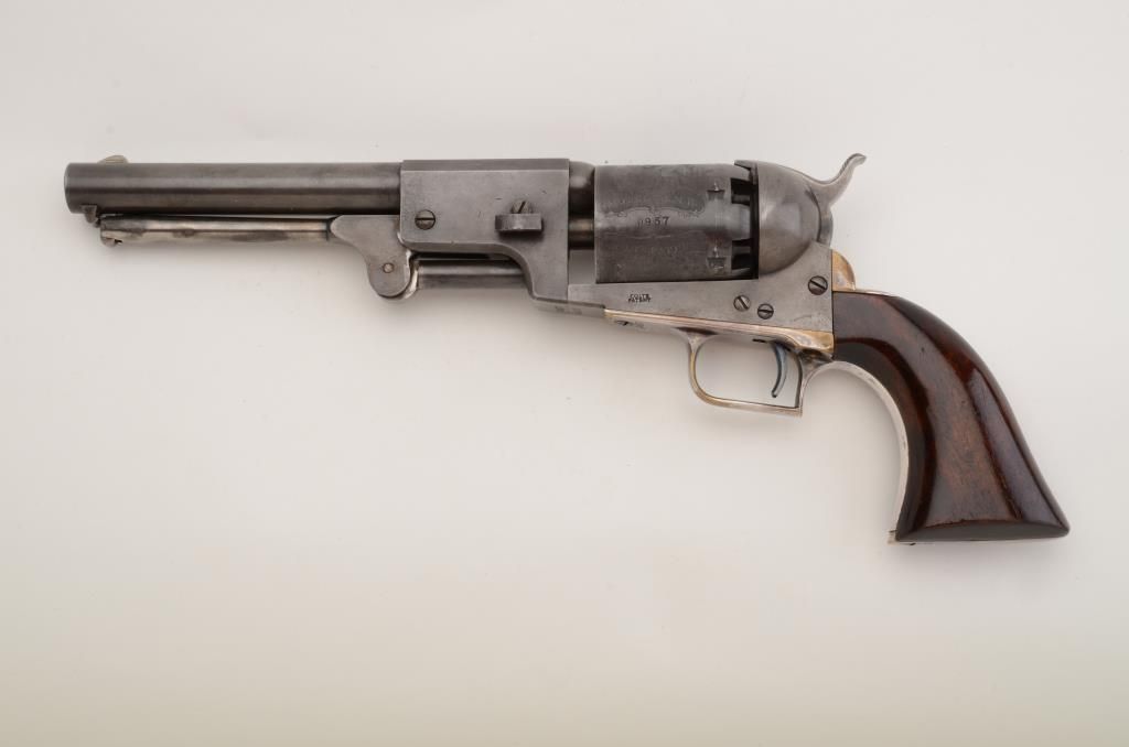 Colt New Blackpowder Series Second Model Dragoon re-worked and aged to look like a first generation percussion Dragoon, re-numbered #9957; .44 cal., 7-1/2” barrel, blue and case hardened finish, wood grips.Est.: $400-$800.
