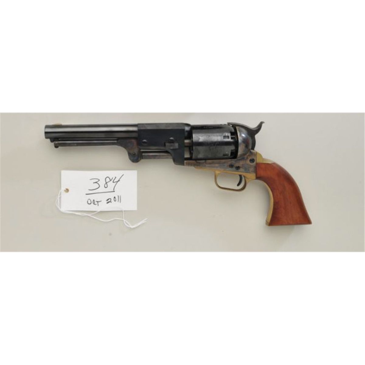 Colt New Blackpowder series, 3rd Model Dragoon, .44 caliber percussion, 7-1/2” barrel, blue and case hardened finish, wood grips, serial #34422. The revolver remains in excellent to near mint condition in itsoriginal box and shows no evidence of firing or use, just slight storage. 99% plus. Est: $400 - $800