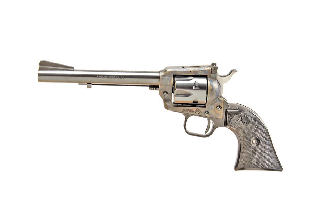 Colt New Frontier SA Cal .22LR SN:G220421 This flat top Colt shows factory 6" BBL, blue and case hardened finish, hard rubber grips, fine to excellent used condition, 96-98%, slight handling, possibly minor use. Desirable.This flat top Colt shows factory 6" BBL, blue and case hardened finish, hard rubber grips, fine to excellent used condition, 96-98%, slight handling, possibly minor use. Desirable.