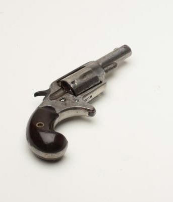 Colt New Line revolver in .32 caliber, S/N 3115 in fair to good condition with 30%-40% nickel remaining showing some pitting and erosion. The action works but sometimes will not revolve and needs repair. The grips are very good. (Antique)est.: $250-$500