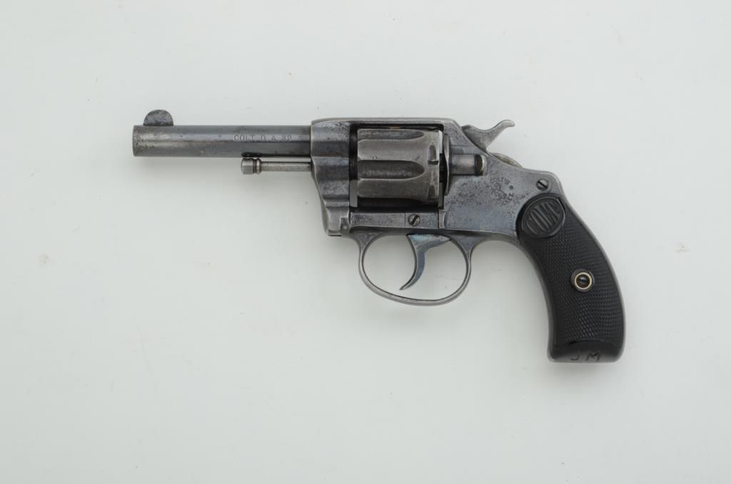 Colt New Pocket DA revolver, .32 cal., 3-1/2” barrel, blue finish, checkered hard rubber grips, #8