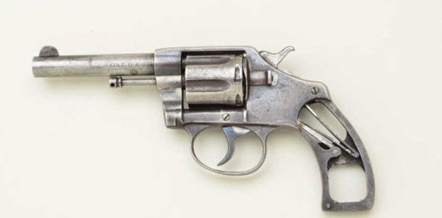 Colt New Pocket DA revolver, .32 cal., 3-1/2” barrel, blue finish, missing grips, #239. This older