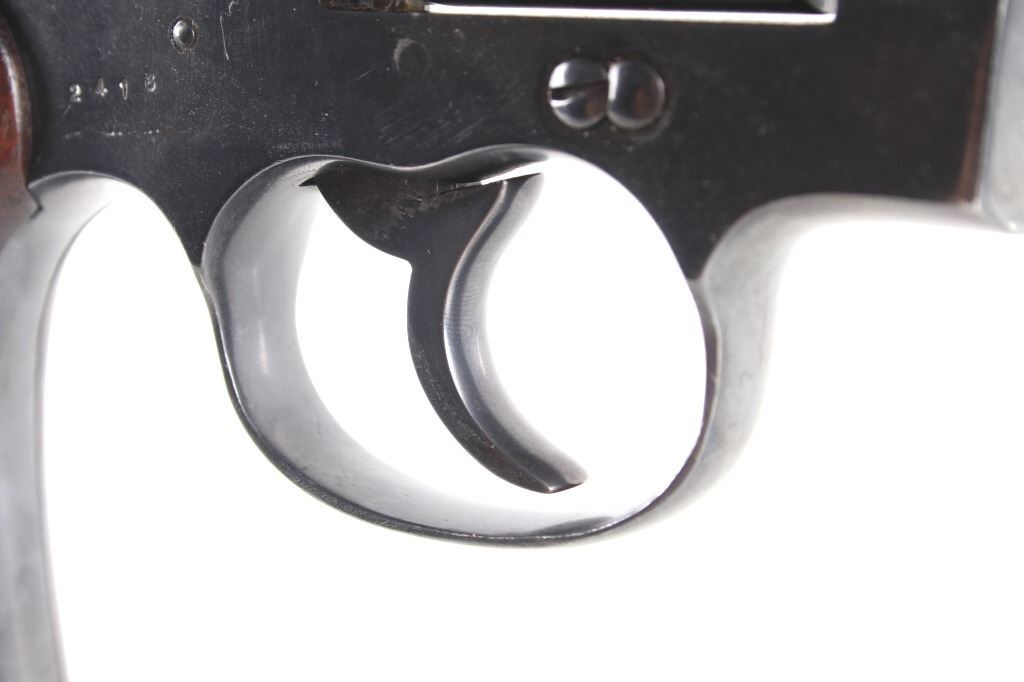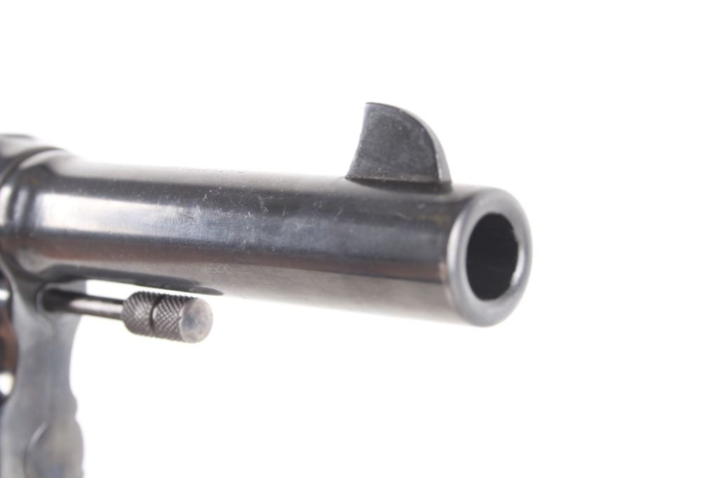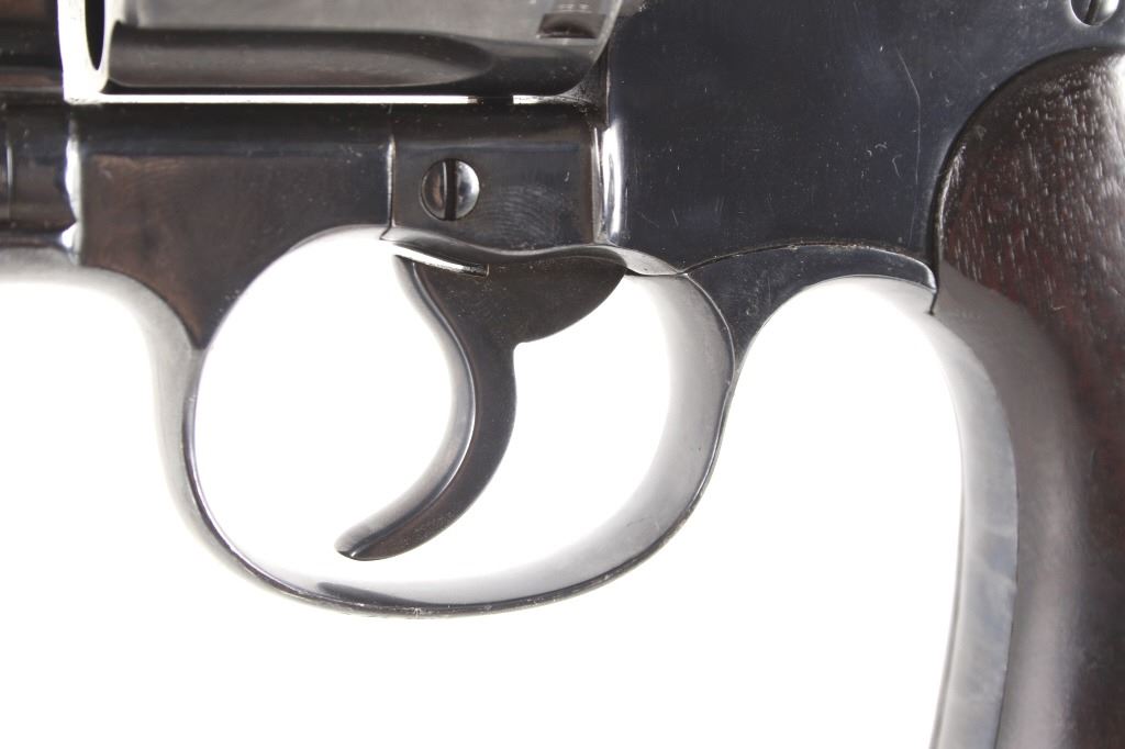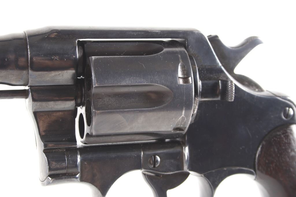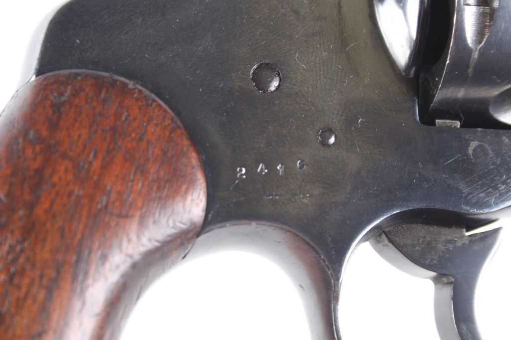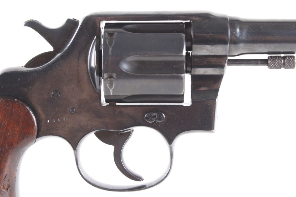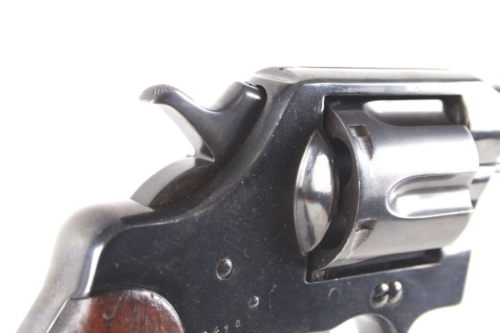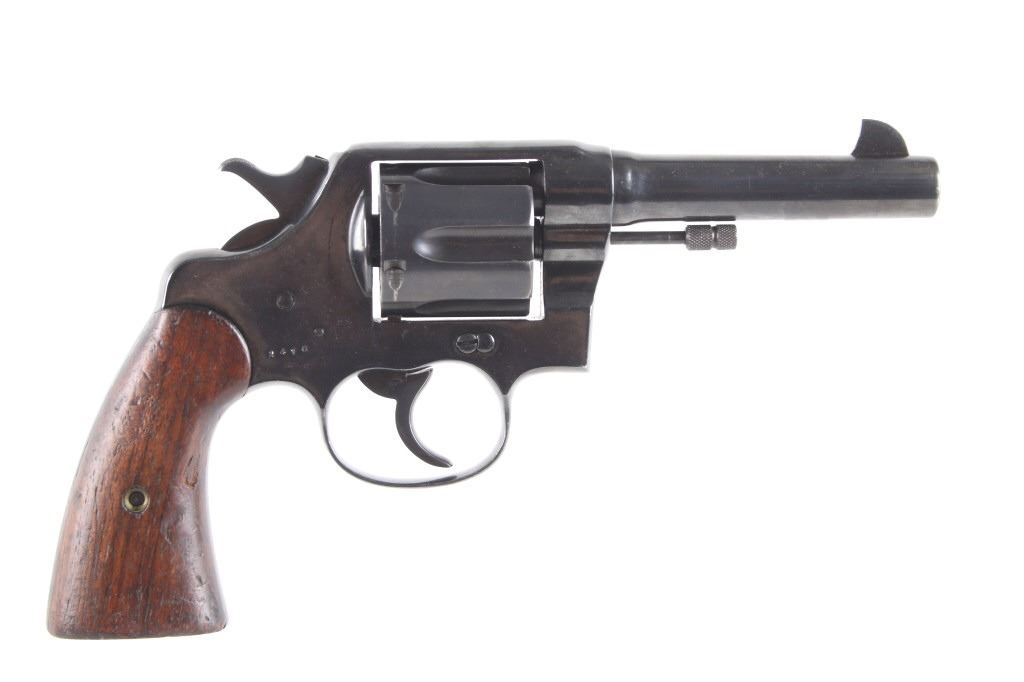 Featured in this lot we have a Colt New Service double action revolver chambered in .44-40 caliber. This revolver was manufactured in the early 1900's by Colt. The revolver displays a 4 1/2" long round barrel, six shot cylinder, walnut grips, double action trigger and hammer, and blue'd finish. The piece is marked across the barrel reading "NEW SERVICE 44-40" on the left side with the top reading "COLT'S PT FA MFG CO HARDFORD. CT USA PAT'D AUG, 5, 1884, JUNE, 5, 1900, JULY, 4, 1905". Mechanically the revolver shows strong springs, well timed action, and crisp trigger. The revolver shows good condition overall with minor wear across the finish with signs of use. The revolver weighs 2lbs 6oz. Serial Number: 105632. This firearm qualifies as a Curio & Relic firearm, and requires FFL Transfer or NICS Background Check.