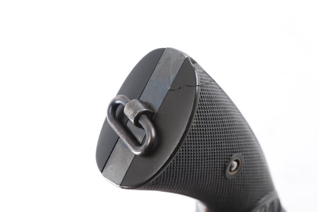 GOOD: Some minor replacement parts; metal smoothly rusted or lightly pitted in places, cleaned or re-blued; principal letters, numerals and design on metal legible; wood refinished, scratched bruised or minor cracks repaired; in good working order.