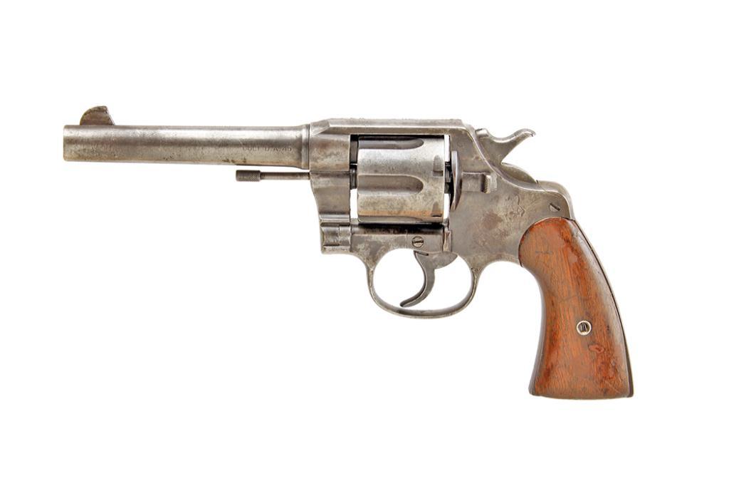 Colt New Service DA Cal .45 Colt SN:168684 5 1/2" barrel, original walnut wood grips, very good mechanical condition, plumb patina overall, no rusting, in Old World character, mfg 1907.5 1/2" barrel, original walnut wood grips, very good mechanical condition, plumb patina overall, no rusting, in Old World character, mfg 1907.