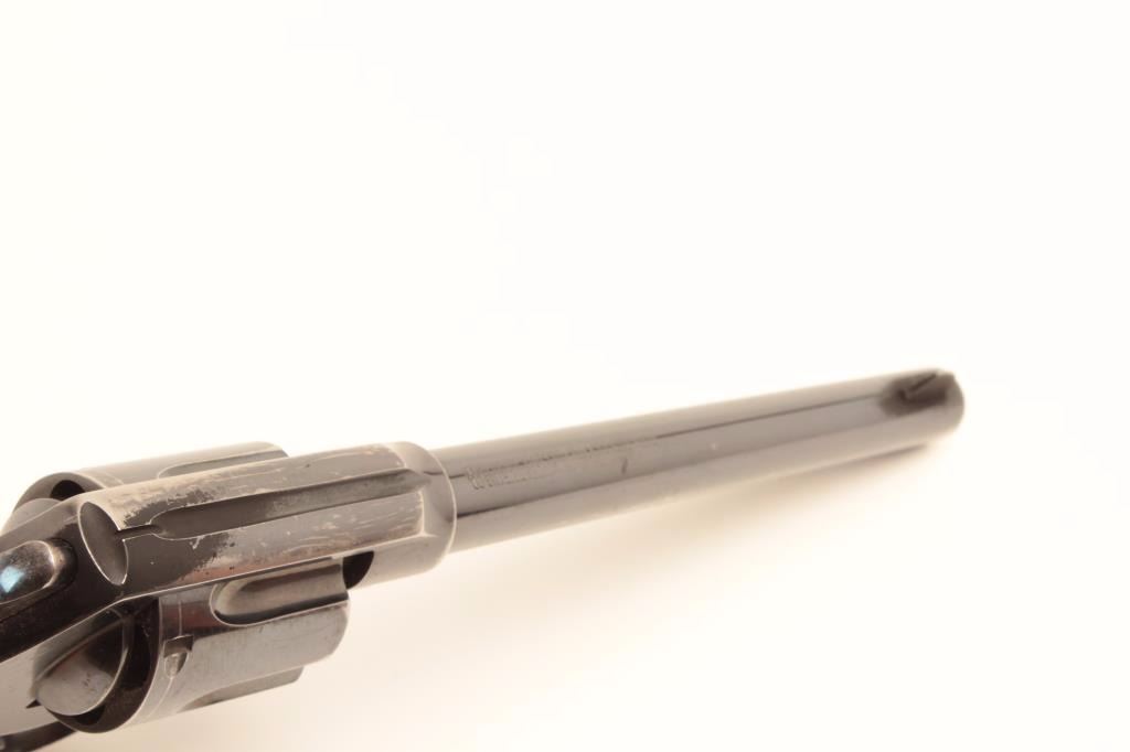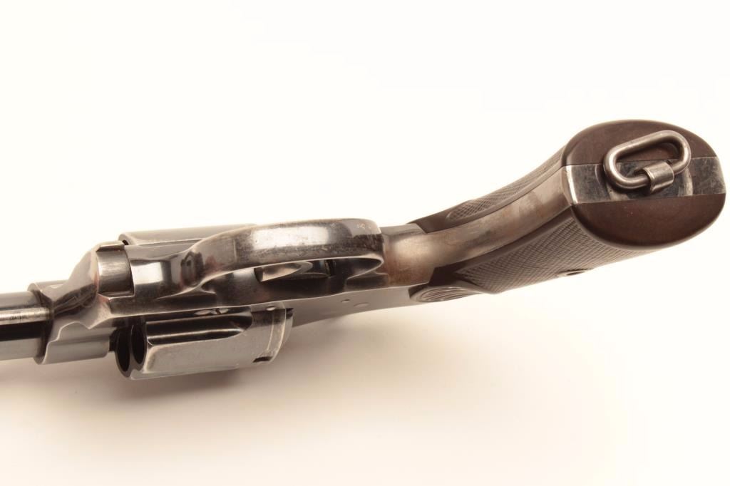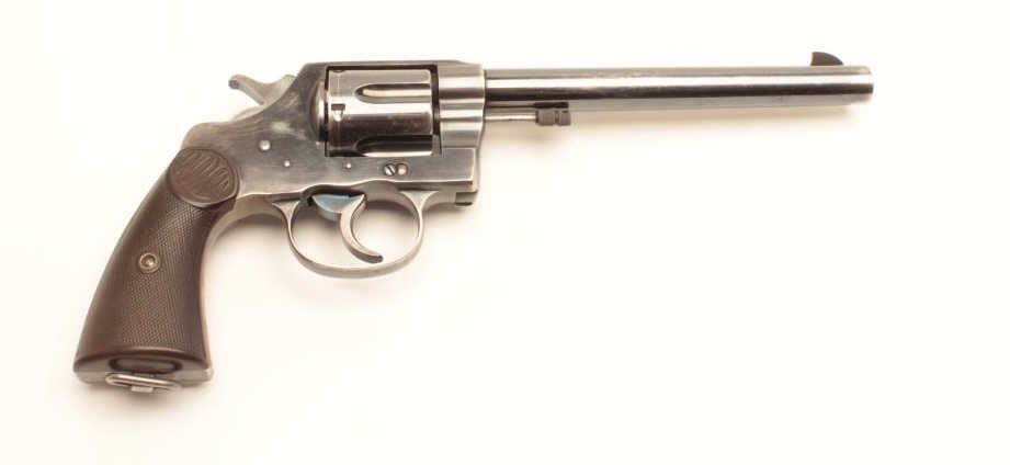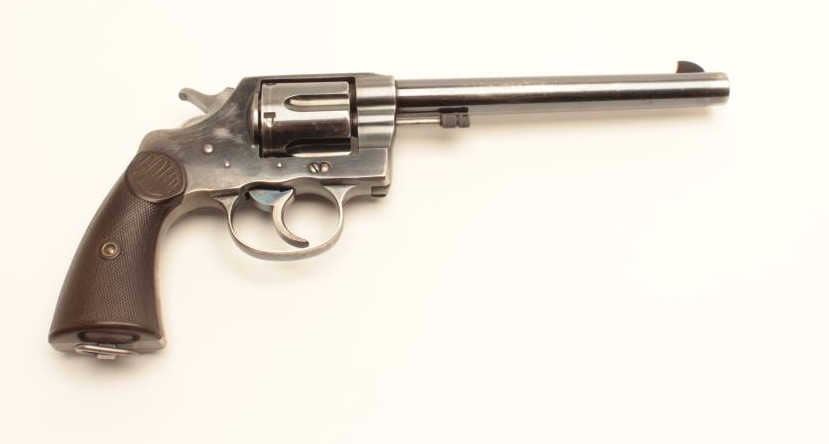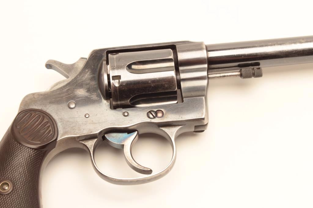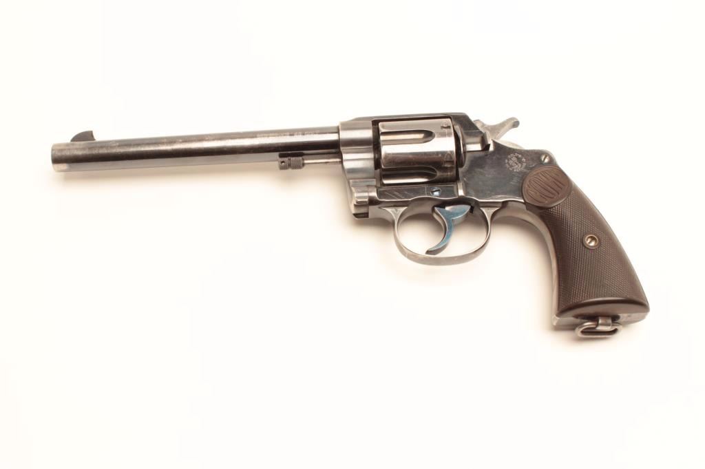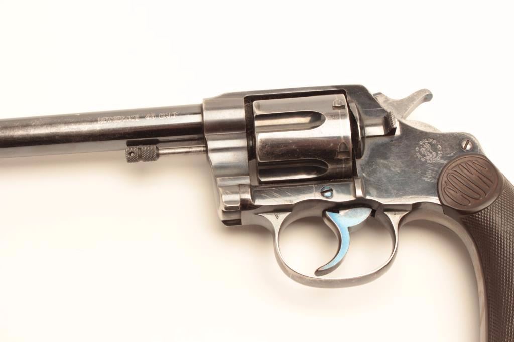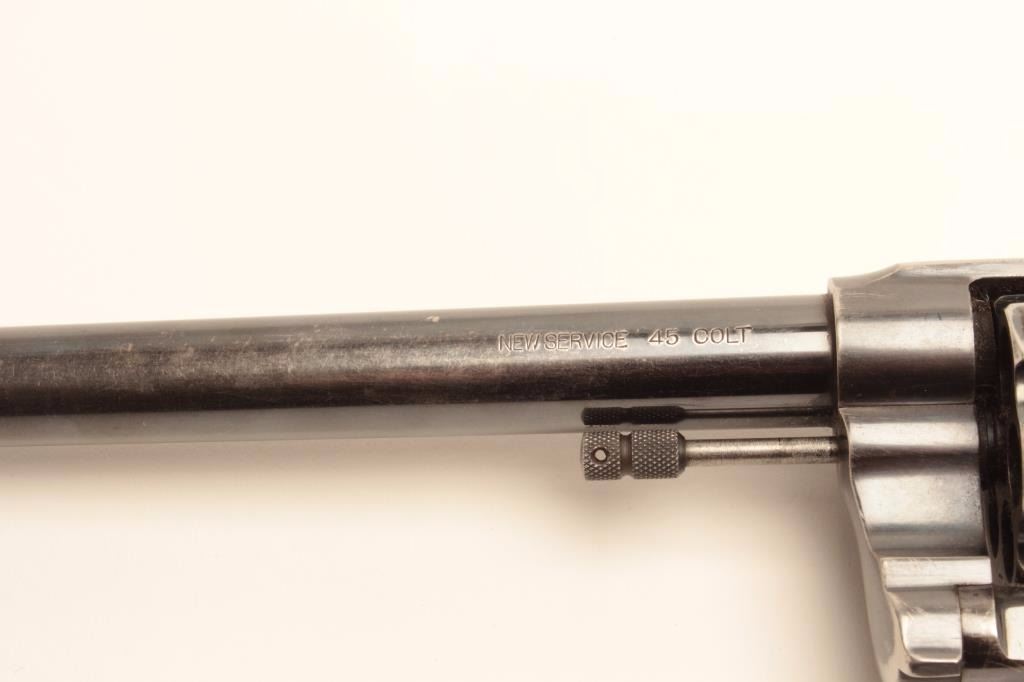 Colt New Service DA revolver, .45 caliber, 7.5” barrel, high polish blued finish, checkered hard rubber grips, lanyard ring, S/N 20217, in fine overall condition displaying approximately 90% original finish, fine bore, crisp action, sharp markings and very good to fine grips. NOTE: This revolver is consecutively numbered to the previous lot! (C&R/PPT). Est.: $2,000-$4,000.