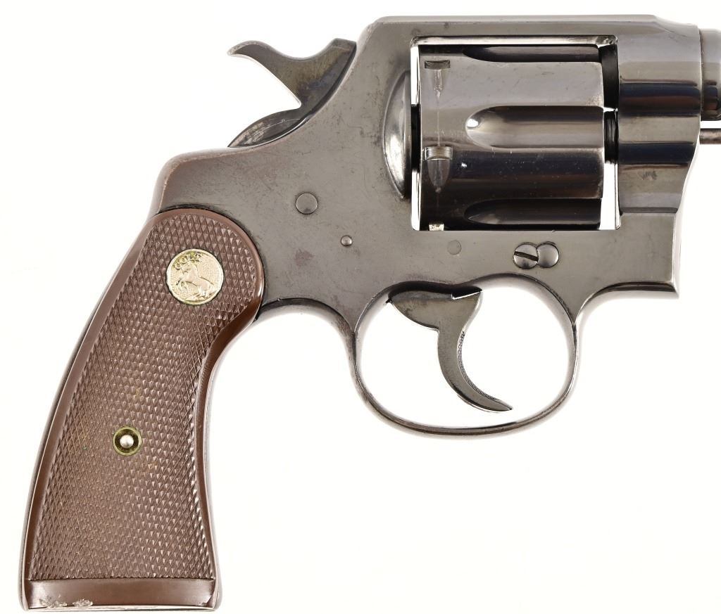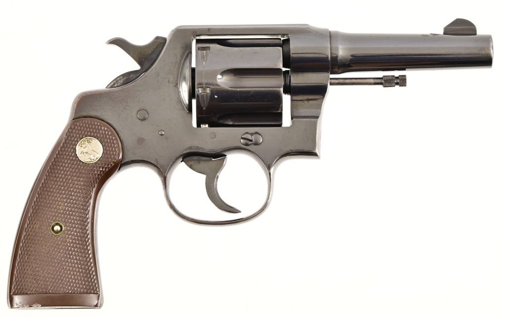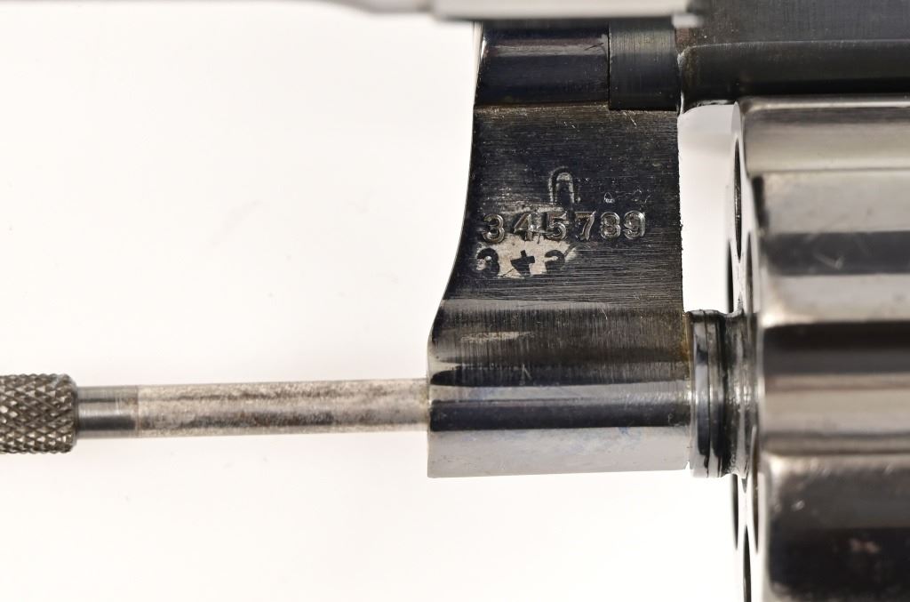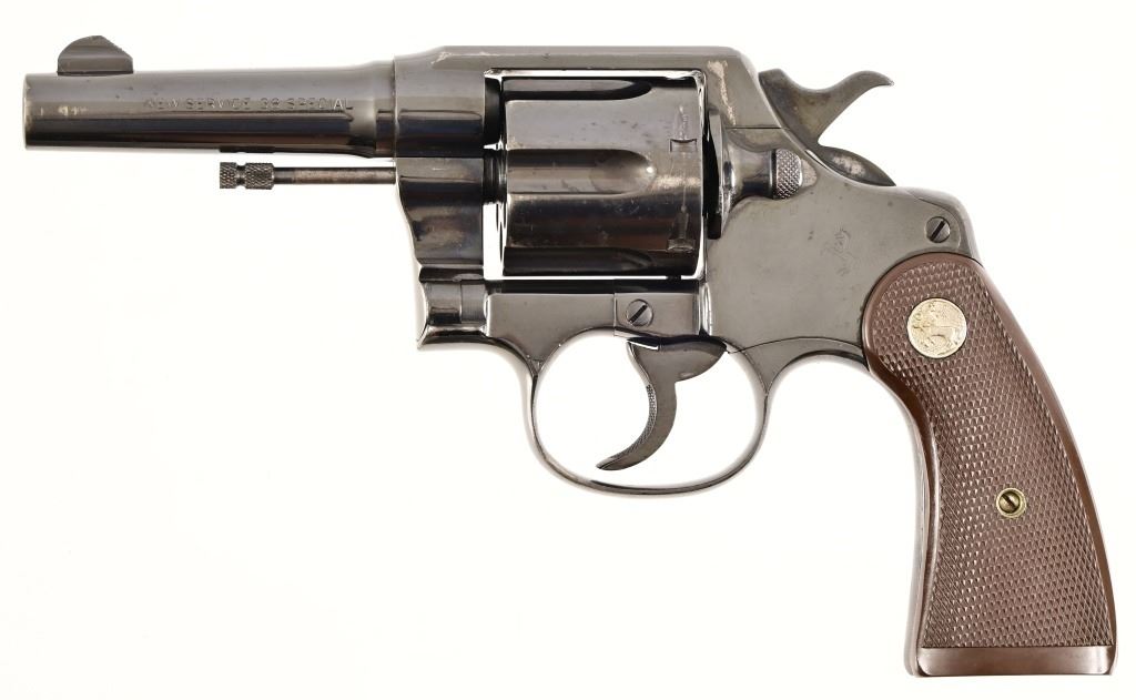 S/N 345789. San Antonio Police marked on butt "S.A.P.D. No. 194." Blued finish, 4" barrel, Rampant Colt medallion checkered wood grips. Modern.