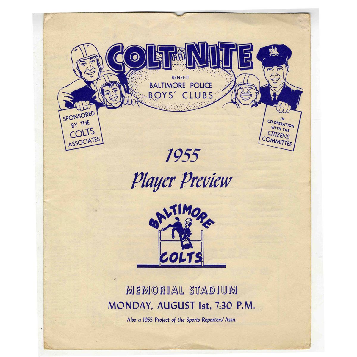 Baltimore Colts ''Colt Nite Player Preview'' -- 1 August 1955 -- 8.75'' x 11'' -- Chip to Top Edge & Pencil Markings -- Very Good