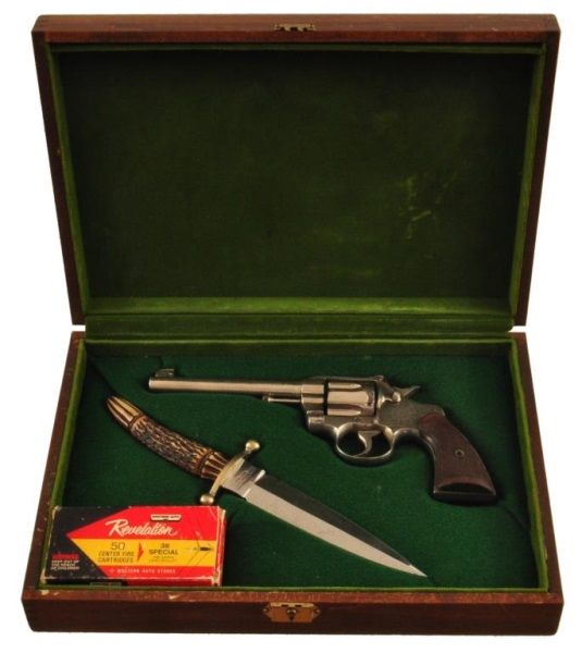 * Wolf & Clarr style engraving for dignitary head of Free Masons. Rebel Flags & swastikas present. Cased with Sheffield Dagger and ammo. Manuf. 1921.