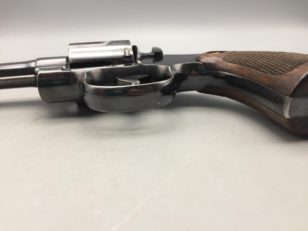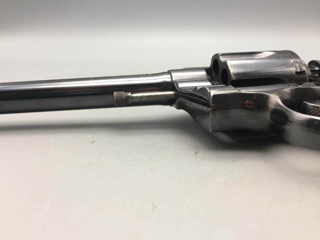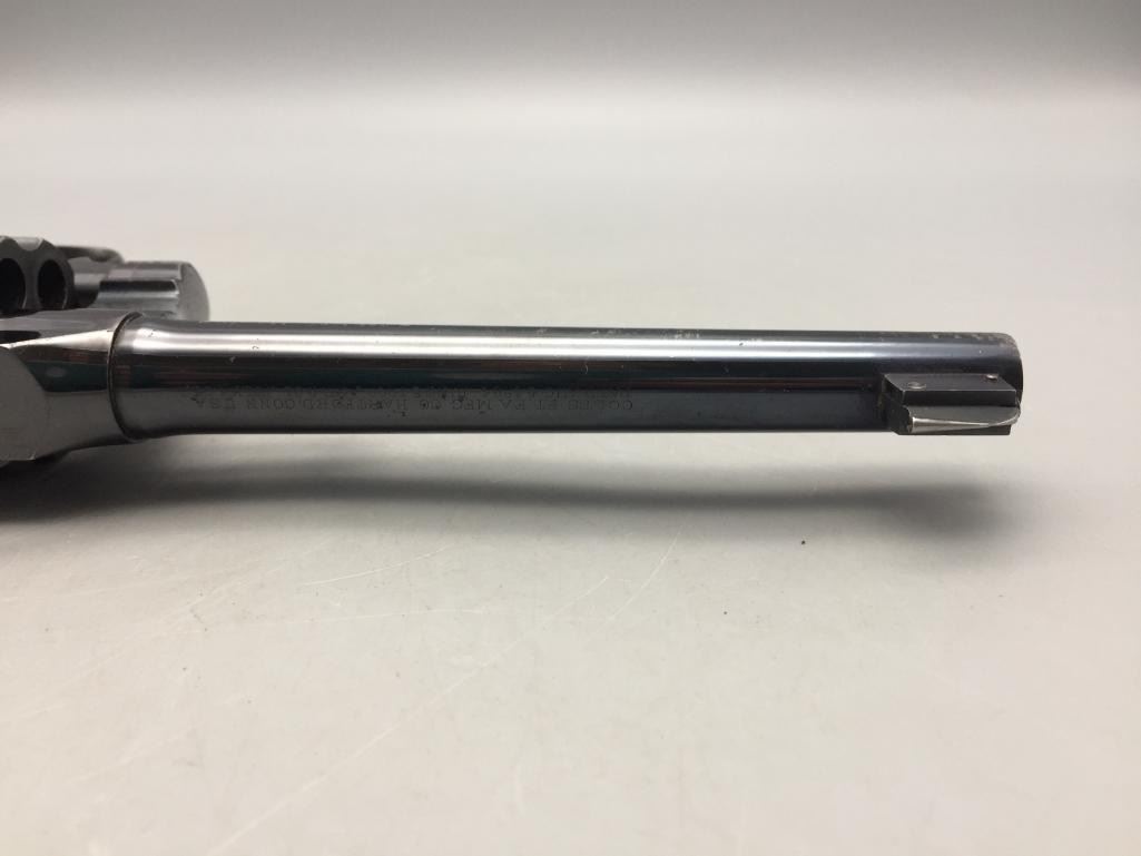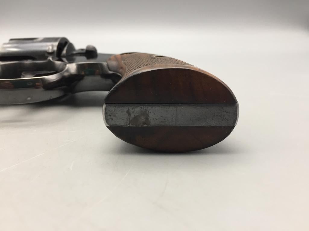 For your bidding consideration we offer this Colt Officers model .38 special. This Colt flat top revolver is in very good to excellent condition for its age. It has the original checkered wood grips and retains most of its original finish. It will come with the pistol case pictured. Maker: Colt. Serial No. 357283. Size: Barrel measures 6". Age: Circa 1913. Please look closely at the pictures - they are an important part of our description. Shipping: There will be a $15 handling / packaging fee for shipping this lot. The actual cost of postage will be added on top of that. *****This firearm requires an FFL Transfer*****