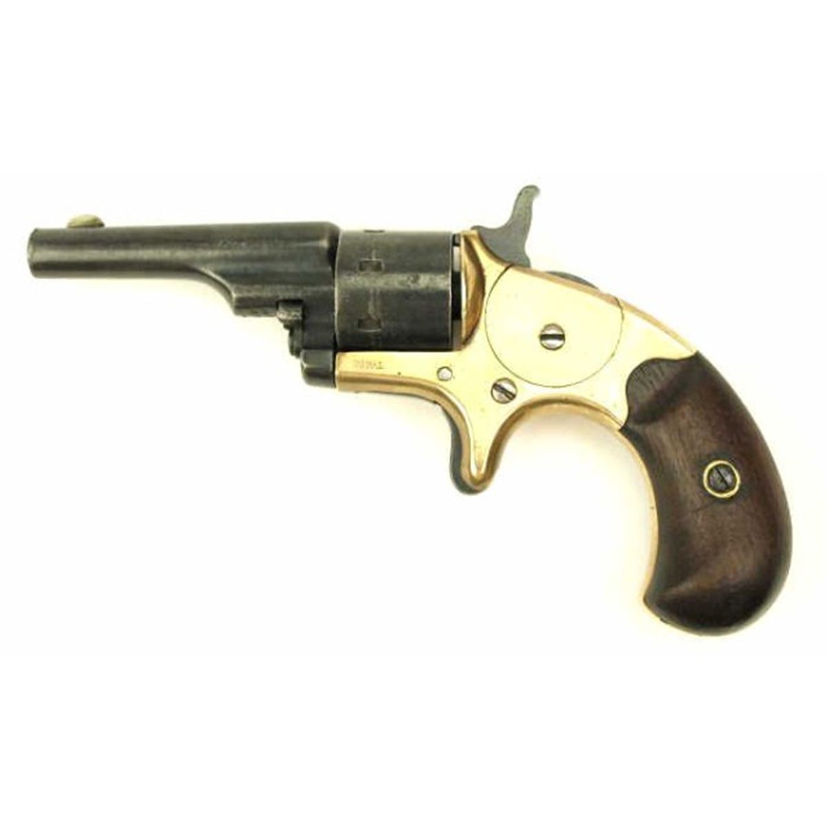 Colt Open Top .22 cal. SN 29124 7 shot revolver 2 3/8" barrel, blued finish, brass frame and walnut birds head grips. Revolver remain very good condition with old refinish, sharp barrel address, nice action with poor bore. NO FFL required.
