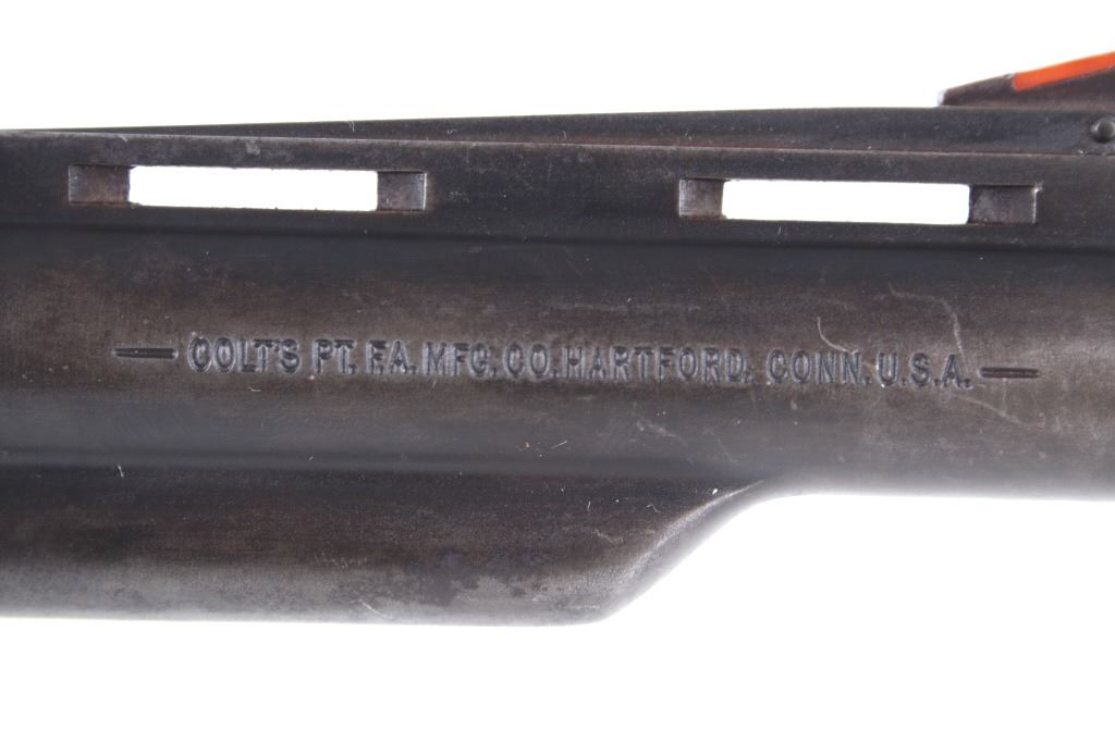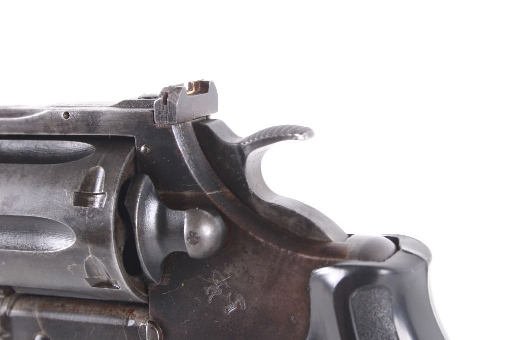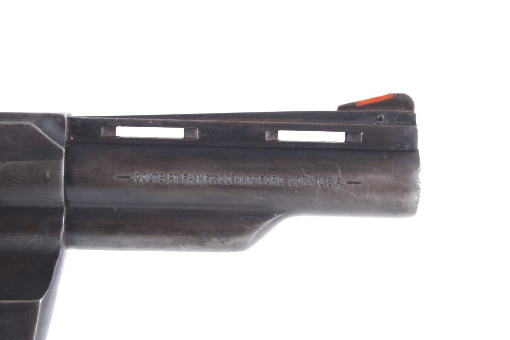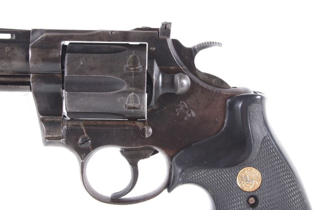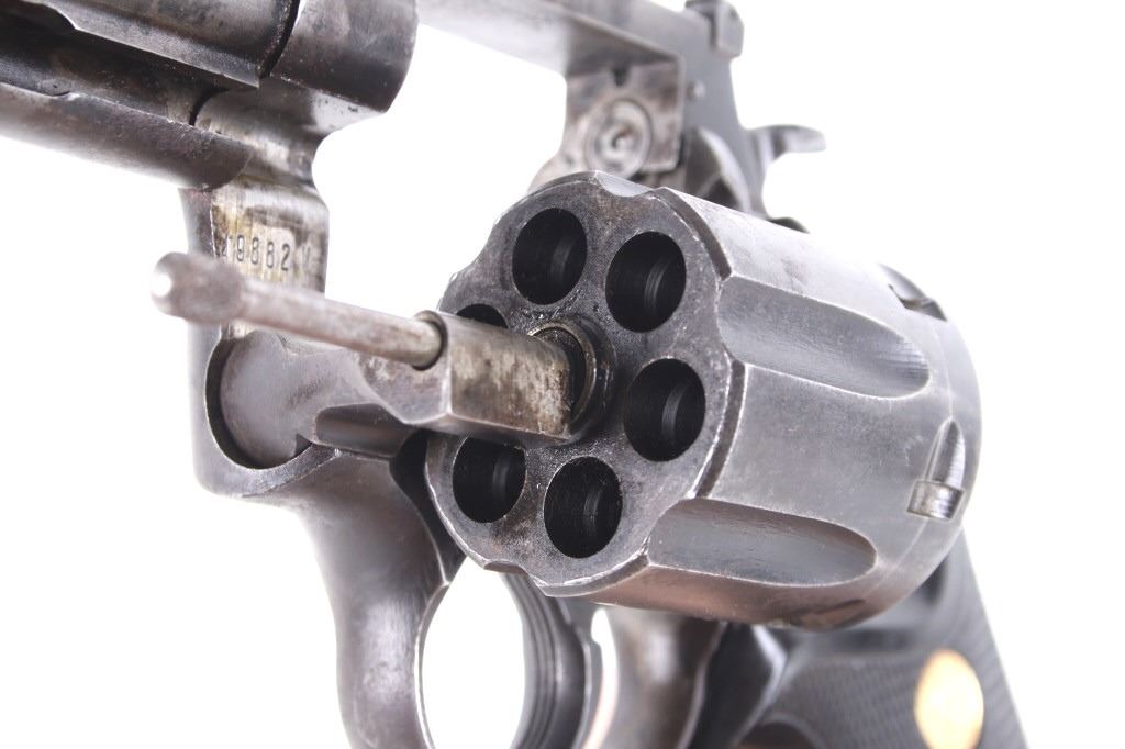 Featured in this lot we have a Colt Peacekeeper model double action revolver chambered in .357 magnum. This Mark V peacekeeper revolver was manufactured in 1985 by Colt. This revolver displays a 4" long ribbed barrel, six shot cylinder, hard rubber grips, fixed sights, and double action system. The revolver is marked across the left side reading "PEACEKEEPER 357 MAGNUM CTG." with the right side reading "COLT'S PT. F.A. MFG. CO. HARTFORD. CONN. U.S.A.". The frame of the revolver is stamped with the rearing horse Colt logo. The hard rubber grips display a checkered design with an inset colt medallion on each side on the top of the grips. Mechanically the revolver displays a crisp double action trigger with a smooth and responsive timing on the cylinder. The revolver shows good condition overall with wear across the piece due to handling and use. It weighs 2lbs 8oz. Serial Number: 49882 V. This is a modern firearm and requires a FFL transfer or NICS background check.