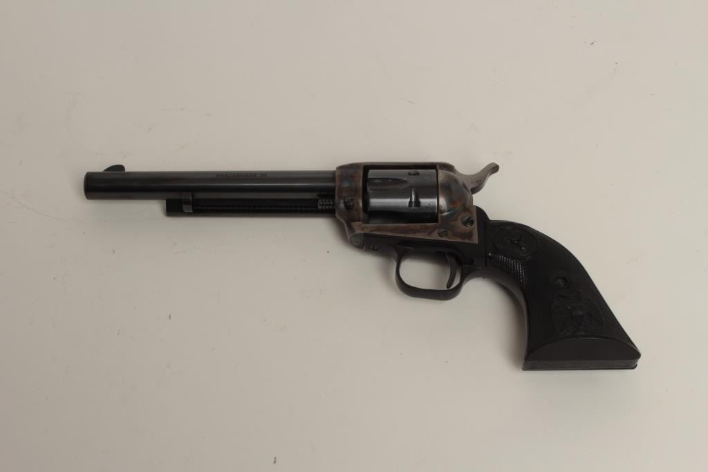 6” barrel, blued and case hardened finish, checkered eagle plastic grips, S/N G29279, in overall excellent condition displaying little use. (Modern/PPT). Est.: $400-$800.