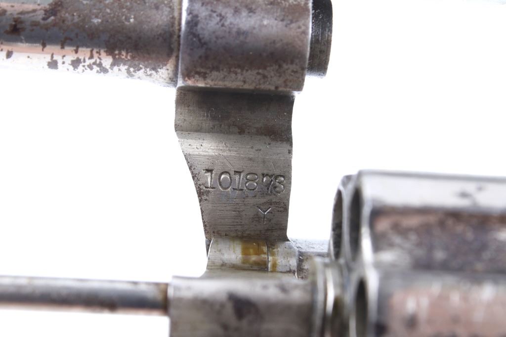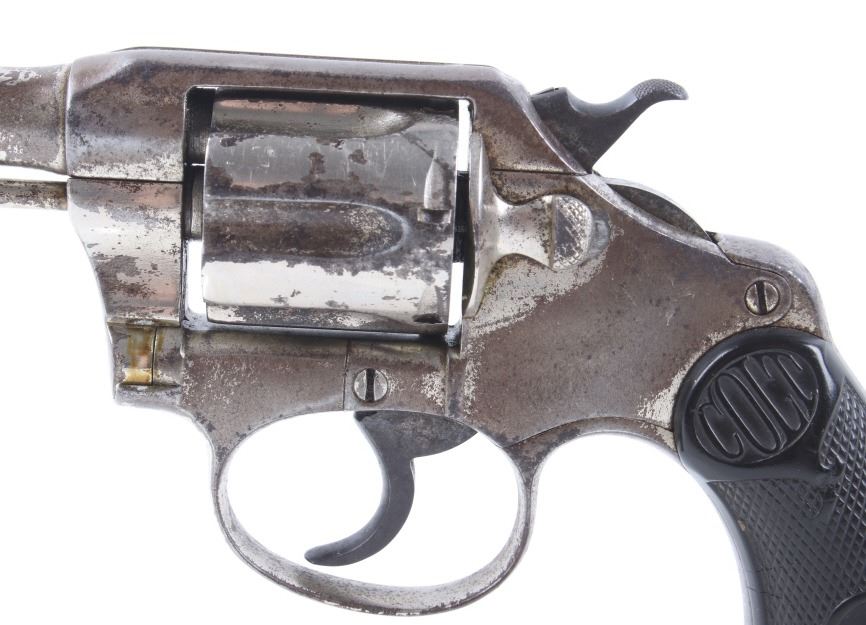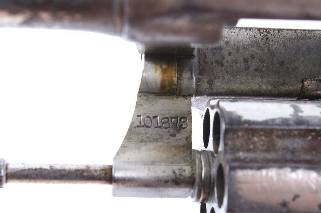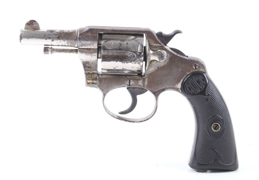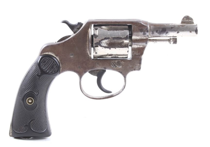 This lot offers you a Colt Police Positive revolver, chambered for .32. This piece features a 2 1/2" barrel, six shot cylinder, and original factory hard rubber grips. The grips display a molded checkered pattern with two oval "Colt" trademark logos on the top of the grips. The top of the barrel is marked in faded lettering. This revolver shows good condition, with wear and handling marks from use and a worn nickel finish. The mechanics function smoothly and are tight. The bore is in good condition, with good rifling. Serial Number: 101873. This firearm qualifies as a Curio & Relic firearm and requires FFL Transfer or NICS Background Check.