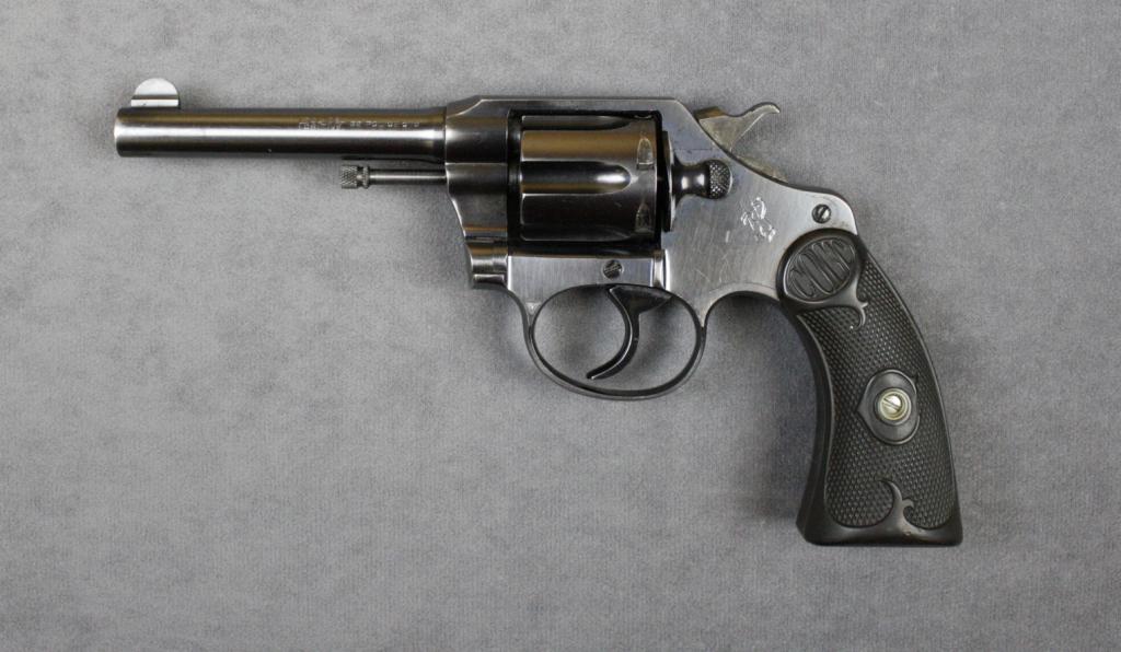 Colt Police Positive Model DA revolver, .32 Police cal., 4” barrel, blue finish, checkered hard rubber grips, #179629. This gun is in overall fine condition showing approx. 97% original finish, fine bore, crisp action and markings, very good grips with the exception of an old chip to the right side grip’s rear toe. Est.: $200-$400.